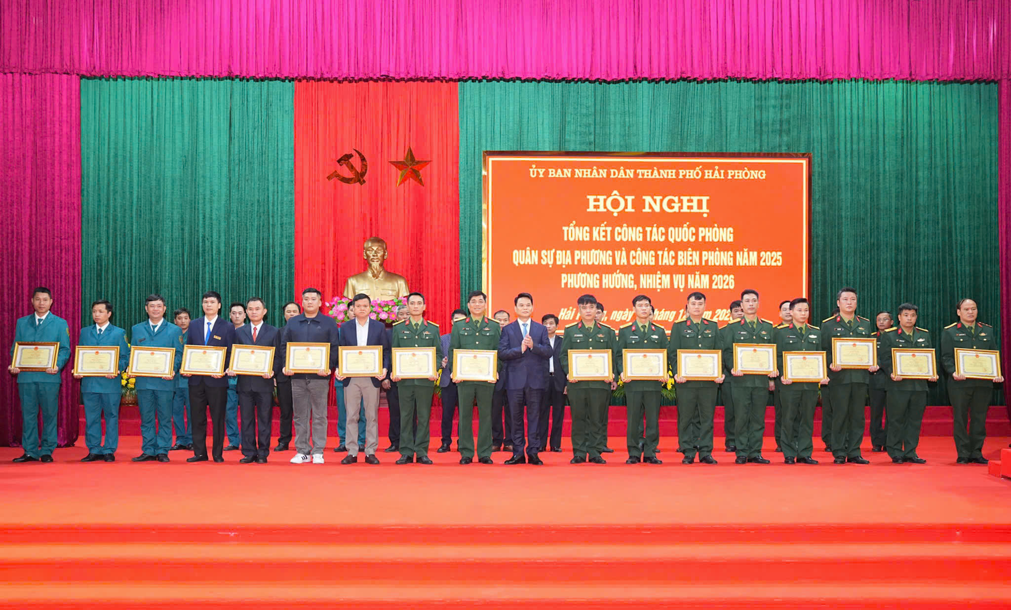 Chủ tịch UBND thành phố tặng bằng khen cho các tập thể, cá nhân có thành tích tiêu biểu trong công tác quốc phòng, quân sự địa phương và biên phòng năm 2025Năm 2026 thành phố Hải Phòng xác định 11 nhiệm vụ trọng tâm trong công tác quốc phòng, quân sự địa phương và công tác biên phòng. Trong đó, thành phố sẽ tiếp tục quán triệt, thực hiện nghiêm quan điểm, đường lối của Đảng về nhiệm vụ quốc phòng, quân sự. Tăng cường quản lý nhà nước về quốc phòng; nâng cao năng lực lãnh đạo, điều hành của cấp ủy, chính quyền các cấp, sự phối hợp giữa các sở, ban ngành, đoàn thể, địa phương trong thực hiện nhiệm vụ quốc phòng, quân sự. Đổi mới, nâng cao chất lượng công tác giáo dục, bồi dưỡng kiến thức quốc phòng, an ninh cho các đối tượng. Chỉ đạo Bộ Chỉ huy quân sự, Công an, duy trì nghiêm chế độ thường trực sẵn sàng chiến đấu. Tăng cường quản lý đất, công trình quốc phòng, khu quân sự trên địa bàn…