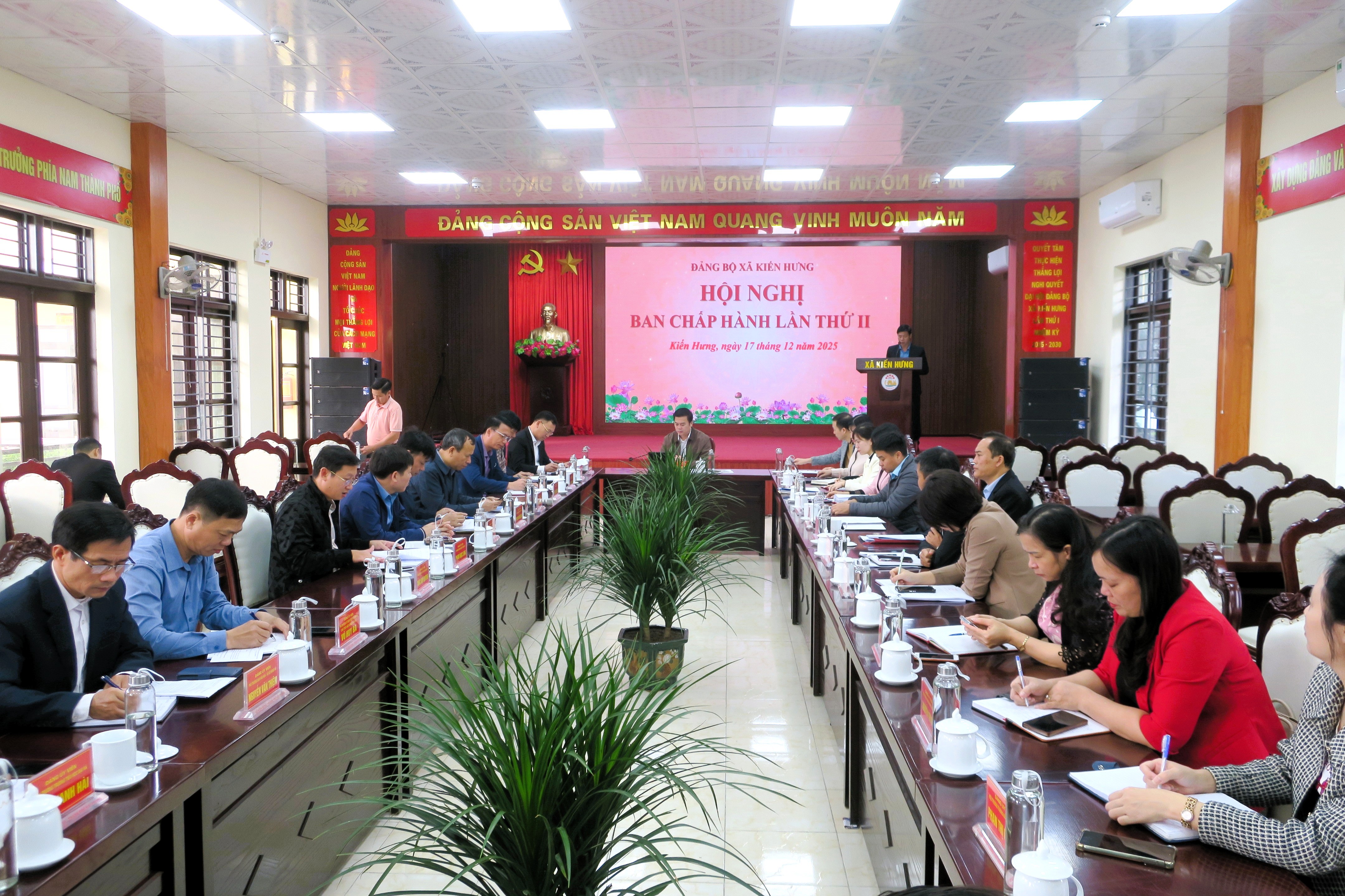 Đồng chí Lê Hữu Toản, Bí thư Đảng ủy, Chủ tịch HĐND xã chủ trì Hội nghị. Tại Hội nghị, các đại biểu xem xét, thảo luận kết quả thực hiện nhiệm vụ công tác năm 2025; chỉ tiêu, phương hướng, nhiệm vụ, giải pháp thực hiện năm 2026. Đồng thời cho ý kiến về Chương trình hành động của Ban Chấp hành Đảng bộ xã thực hiện Nghị quyết Đại hội Đảng bộ thành phố Hải Phòng lần thứ I, nhiệm kỳ 2025 – 2030; Đề án thành lập Trạm Y tế xã Kiến Hưng trên cơ sở hợp nhất các Trạm Y tế trên địa bàn xã; cùng một số nội quan trọng khác.