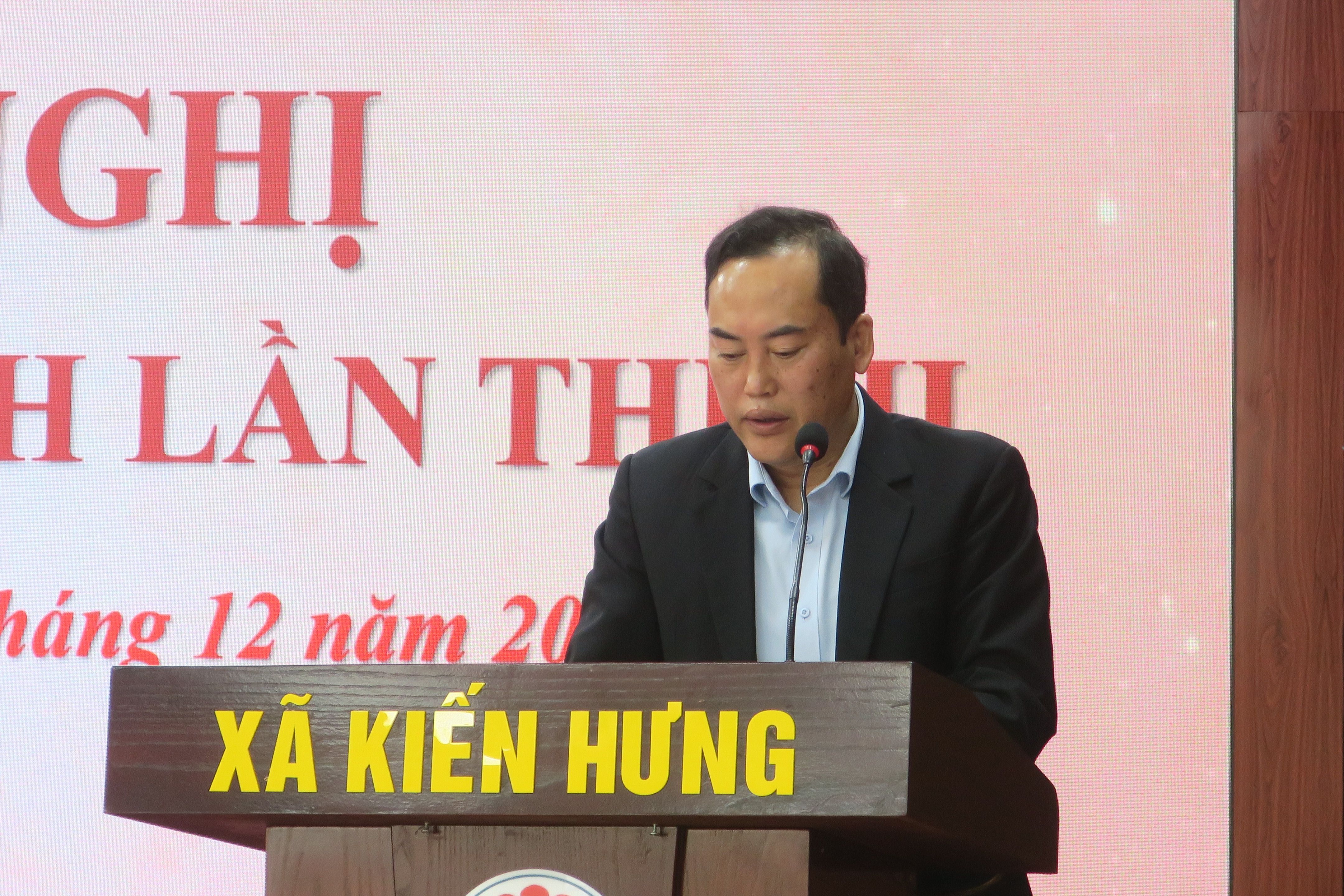 Đồng chí Vũ Thanh Sơn, Phó Bí thư Thường trực Đảng ủy xã Kiến Hưng thông tin về kết quả hoạt động của Đảng ủy xã trong năm 2025.Năm 2025, với tinh thần quyết tâm chính trị cao, Đảng bộ, chính quyền, quân và dân xã Kiến Hưng đã đoàn kết, nỗ lực phấn đấu, thực hiện thắng lợi nhiều nhiệm vụ chính trị quan trọng trên các lĩnh vực công tác. Sau sắp xếp, Đảng ủy xã đã kịp thời điều chỉnh, hoàn thiện phương thức lãnh đạo phù hợp với mô hình tổ chức mới. Tổ chức thành công Đại hội Đảng bộ xã lần thứ I và Đại hội đại biểu MTTQ và các tổ chức chính trị - xã hội xã, nhiệm kỳ 2025 - 2030. Công tác thông tin, tuyên truyền, định hướng dư luận tập trung cao, tạo đột phá trên các nền tảng số, giúp Nhân dân kịp thời nắm bắt chủ trương, kết quả thực hiện nhiệm vụ của địa phương.