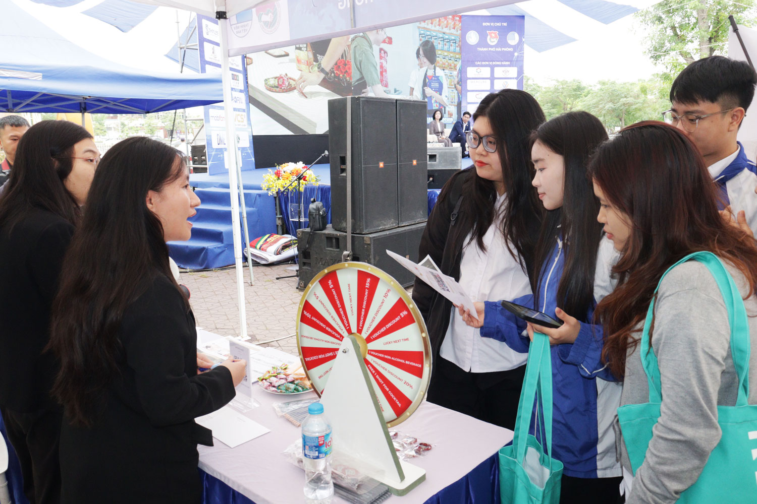 (Haiphong.gov.vn) - Sáng 14/12, tại Cung Văn hóa Thể thao Thanh niên, Thành đoàn Hải Phòng tổ chức Ngày hội tư vấn hướng nghiệp, giáo dục nghề nghiệp và giới thiệu việc làm cho thanh niên năm 2025. Tham gia Ngày hội có hơn 25 gian hàng của các doanh nghiệp đến tư vấn, tuyển dụng và hơn 1.000 đoàn viên, thanh niên, học sinh, sinh viên và người lao động tới dự.