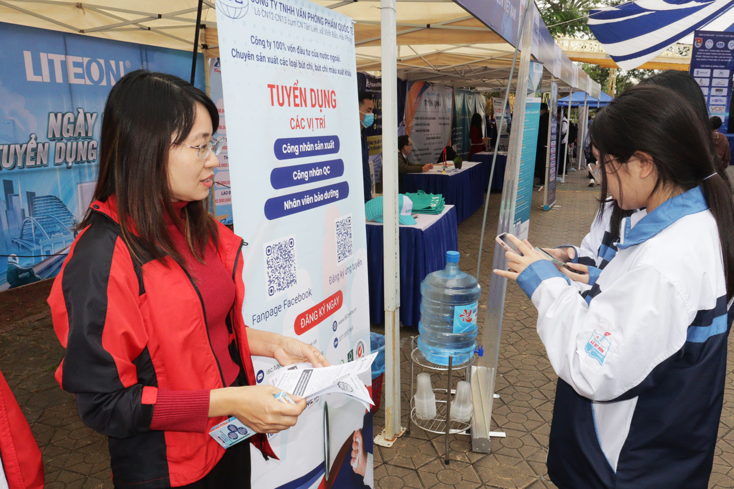 Đoàn viên, thanh niên tham quan các gian hàng tuyển dụng.Trong khuôn khổ Ngày hội, đoàn viên, thanh niên cũng đã tham quan các gian hàng tuyển dụng - tư vấn - trải nghiệm nghề nghiệp của hơn 25 doanh nghiệp, đơn vị đào tạo; qua đó góp phần hỗ trợ thanh niên tiếp cận cơ hội việc làm mà còn tạo điều kiện để các doanh nghiệp tìm kiếm nguồn nhân lực trẻ, có chất lượng, đáp ứng yêu cầu phát triển của đơn vị. Đoàn viên, thanh niên cũng được hướng dẫn kỹ năng lái xe an toàn, kỹ thuật xử lý tình huống khi tham gia giao thông; kiểm tra tình trạng xe và tư vấn sử dụng xe máy an toàn; thay dầu miễn phí theo tiêu chuẩn hãng…