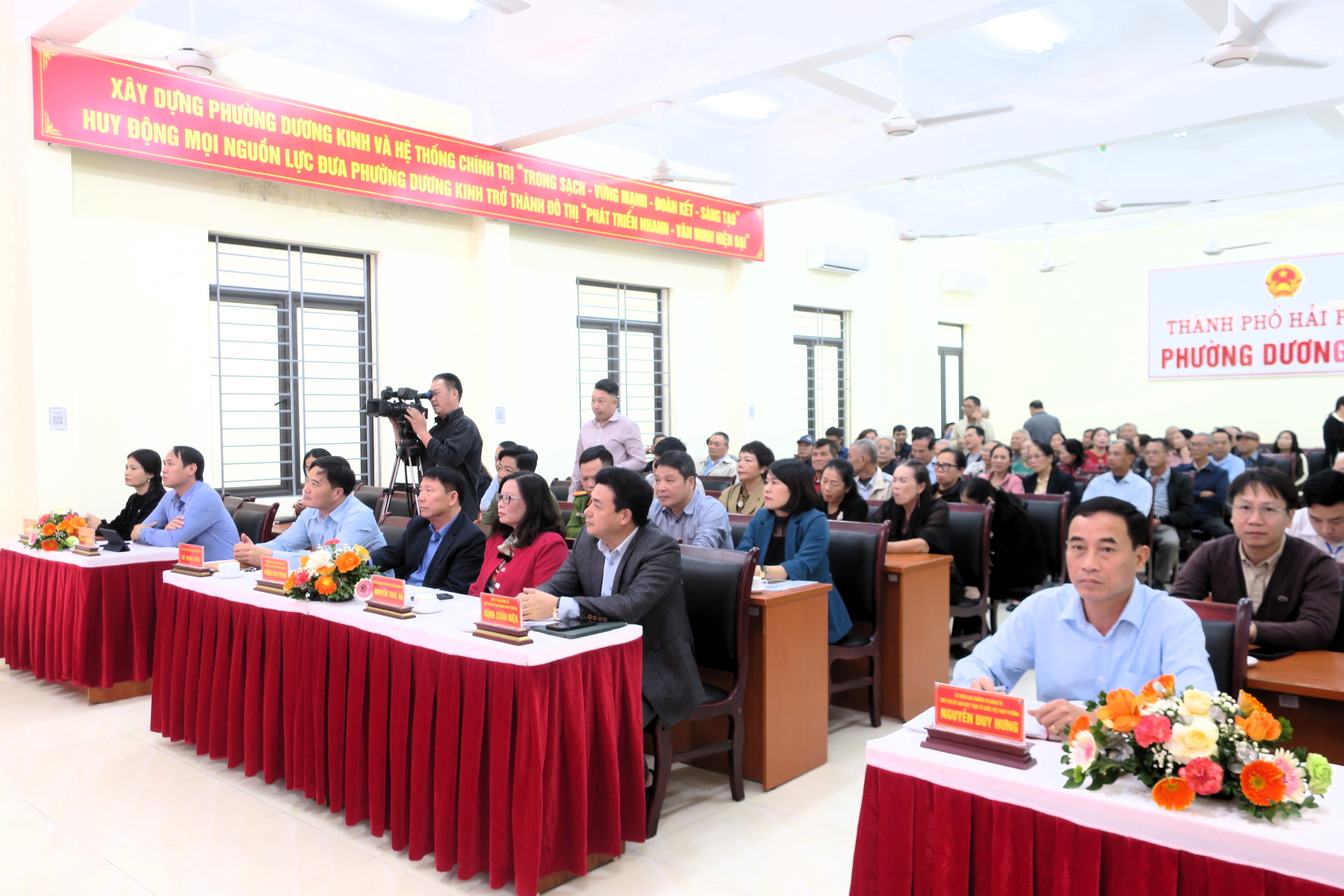 Đồng chí Đặng Xuân Điện, Phó Bí thư Đảng ủy, Chủ tịch UBND phường thông tin trả lời kiến nghị.Tại Hội nghị, các đại biểu nghe thông báo tình hình, kết quả thực hiện nhiệm vụ chính trị của phường 05 tháng (sau sắp xếp); nhiệm vụ, giải pháp trọng tâm trong tháng cuối năm 2025; nghe thông báo kết quả giải quyết ý kiến, kiến nghị của Nhân dân các phường Hải Thành, Hòa Nghĩa, Tân Thành cũ (nay là phường Dương Kinh) tại Hội nghị đối thoại giữa người đứng đầu cấp ủy, chính quyền quận Dương Kinh với Nhân dân năm 2024. Đồng thời, thông báo kết quả giải quyết ý kiến, kiến nghị của Nhân dân tại Hội nghị đối thoại năm 2025.