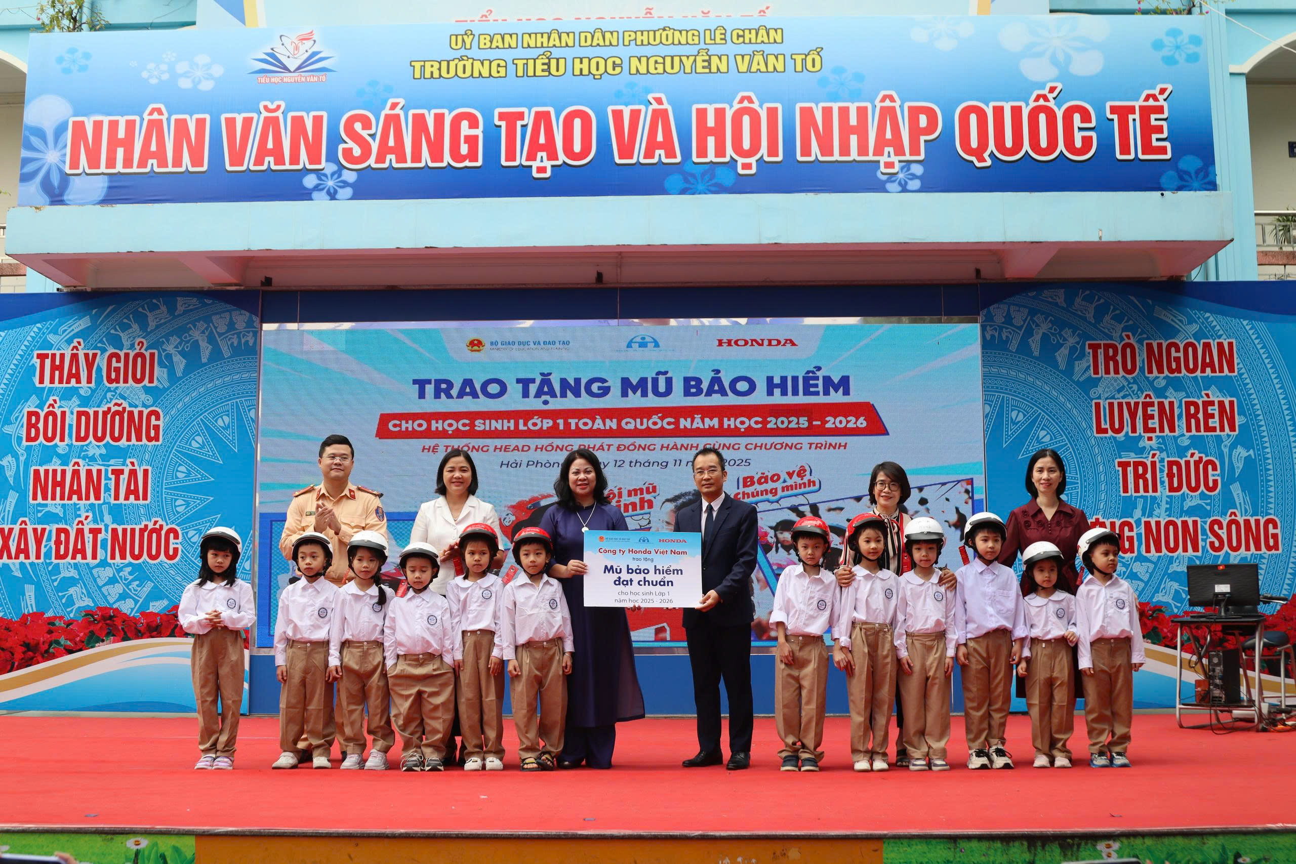 (Haiphong.gov.vn) – Sáng 12/11, tại Trường Tiểu học Nguyễn Văn Tố, Sở Giáo dục và Đào tạo phối hợp với Ban An toàn giao thông thành phố tổ chức Lễ phát động Chương trình trao tặng mũ bảo hiểm cho học sinh lớp 1 năm học 2025–2026 với chủ đề “Đội mũ xinh – bảo vệ chúng mình”.