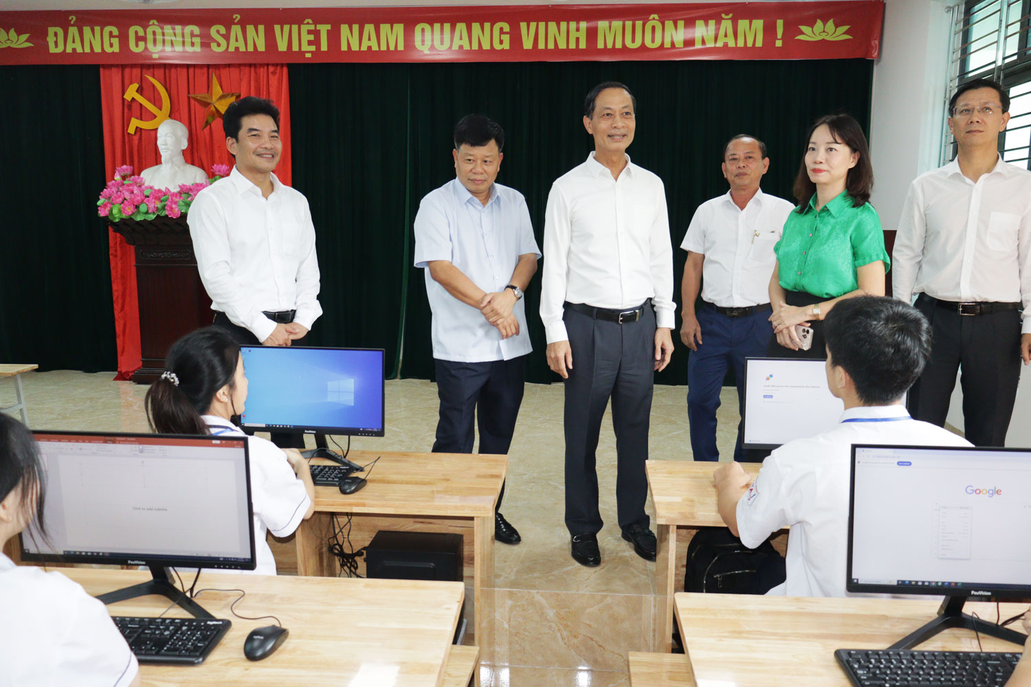 Phó Bí thư Thường trực Thành ủy Đỗ Mạnh Hiến dự Lễ khánh thành phòng máy tính hiện đại tại Trường THPT An Dương nhân Kỷ niệm 60 năm thành lập Trường