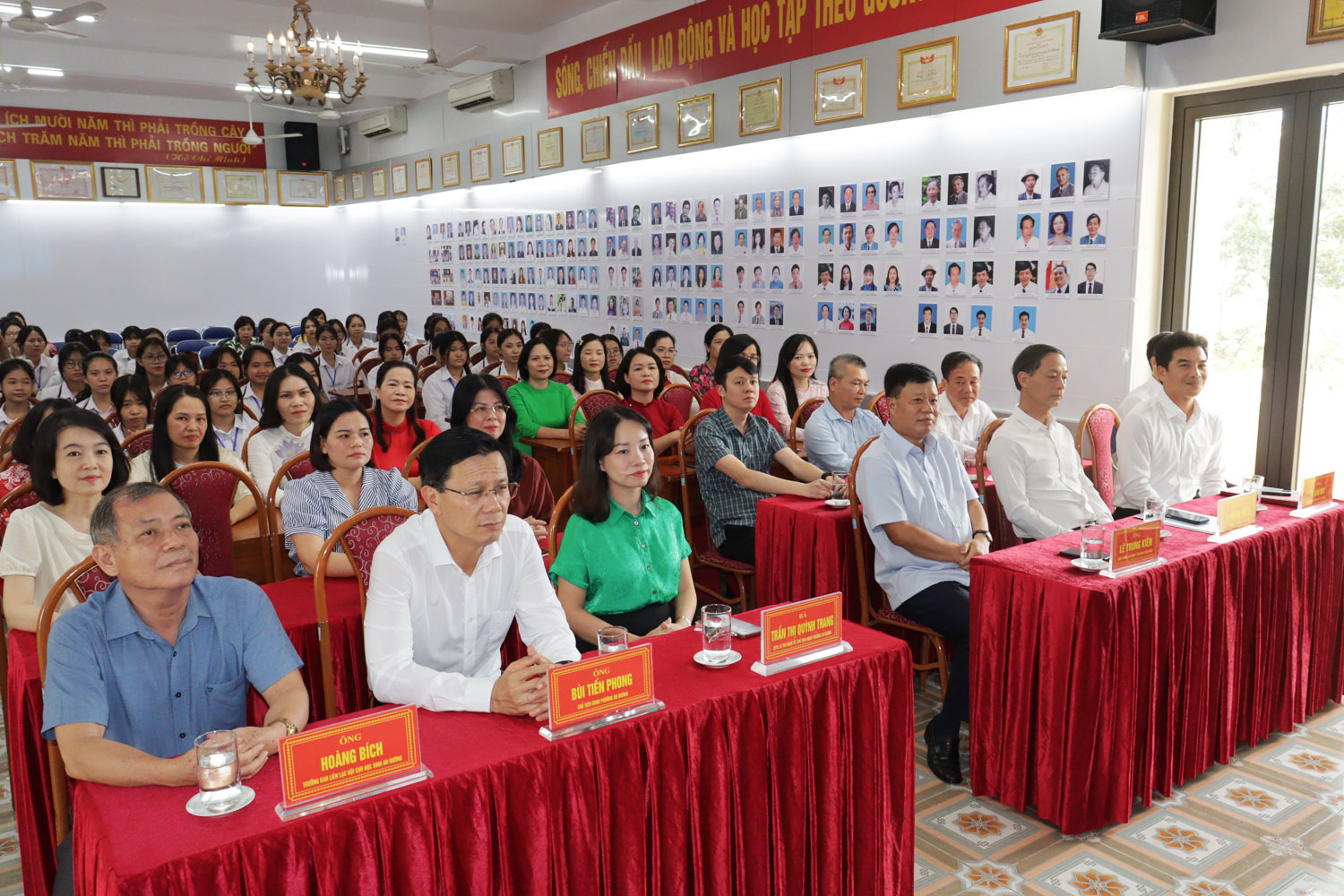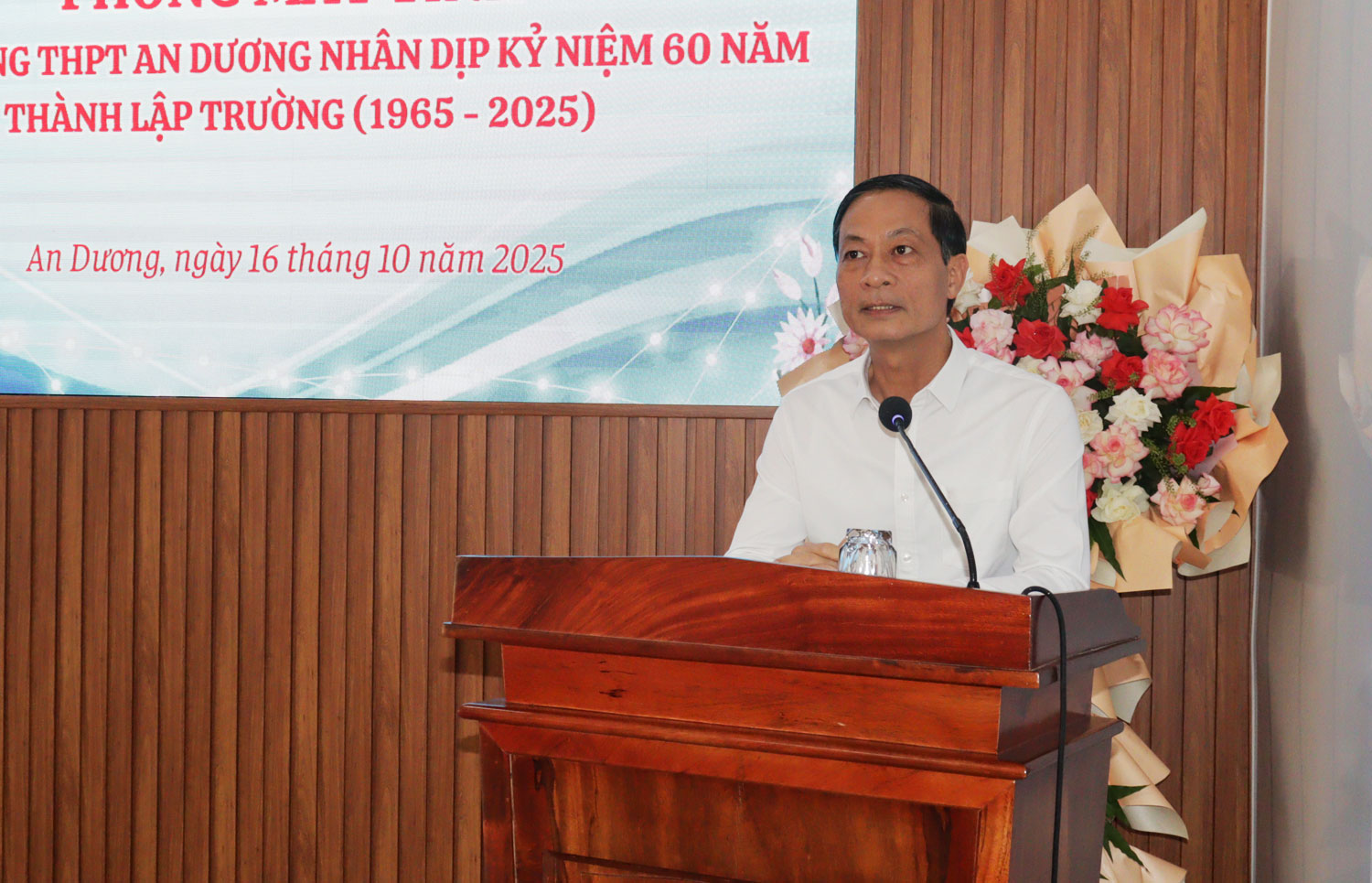 Các đại biểu và các em học sinh dự chương trình.Phát biểu chúc mừng các thầy cô và các em học sinh Trường THPT An Dương, đồng chí Đỗ Mạnh Hiến, Phó Bí thư Thường trực Thành ủy ghi nhận những đóng góp của Trường THPT An Dương đối với sự nghiệp giáo dục và đào tạo nguồn nhân lực chất lượng cao cho thành phố; đồng thời biểu dương những thành tích xuất sắc mà nhà trường đã đạt được trong công tác dạy và học. Đồng chí mong muốn, trong giai đoạn phát triển mới, Trường THPT An Dương sẽ tiếp tục phát huy truyền thống tốt đẹp, không ngừng nâng cao chất lượng giáo dục, đẩy mạnh ứng dụng công nghệ thông tin, tiên phong trong công cuộc chuyển đổi số, xứng đáng với niềm tin và kỳ vọng của Đảng bộ, chính quyền và nhân dân thành phố. Đồng chí chúc thầy và trò nhà trường tiếp tục gặt hái thêm nhiều thành công, đóng góp tích cực vào sự phát triển chung của thành phố Hải Phòng.