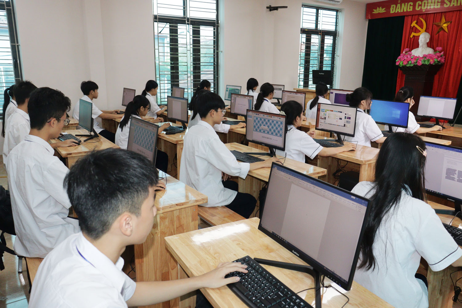 Các em học sinh tại phòng máy tính hiện đại của trường.Phòng máy tính mới được khánh thành là công trình có ý nghĩa thiết thực, góp phần nâng cao chất lượng giảng dạy và học tập, đặc biệt trong việc triển khai chương trình chuyển đổi số và ứng dụng công nghệ thông tin vào giáo dục. Đây sẽ là động lực để thầy và trò Trường THPT An Dương tiếp tục phát huy truyền thống, đạt được nhiều thành tích cao hơn nữa trong thời gian tới./.