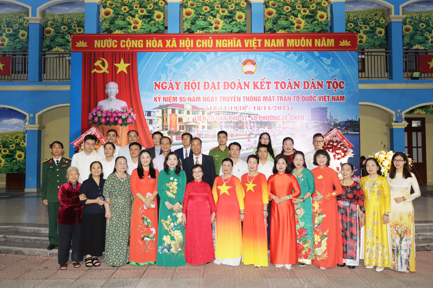Tới dự Ngày hội có các đồng chí: Đỗ Mạnh Hiến, Phó Bí thư Thường trực Thành ủy; Nguyễn Đức Tuấn, Ủy viên Ban Thường vụ Thành ủy, Phó Chủ tịch Thường trực Ủy ban MTTQ Việt Nam thành phố; Nguyễn Quang Phúc, Ủy viên Ban Thường vụ Thành ủy, Trưởng Ban Tuyên giáo và Dân vận Thành ủy; Phạm Quang Sáng, Phó Bí thư Đảng ủy Các cơ quan Đảng thành phố và lãnh đạo phường Lê Chân.