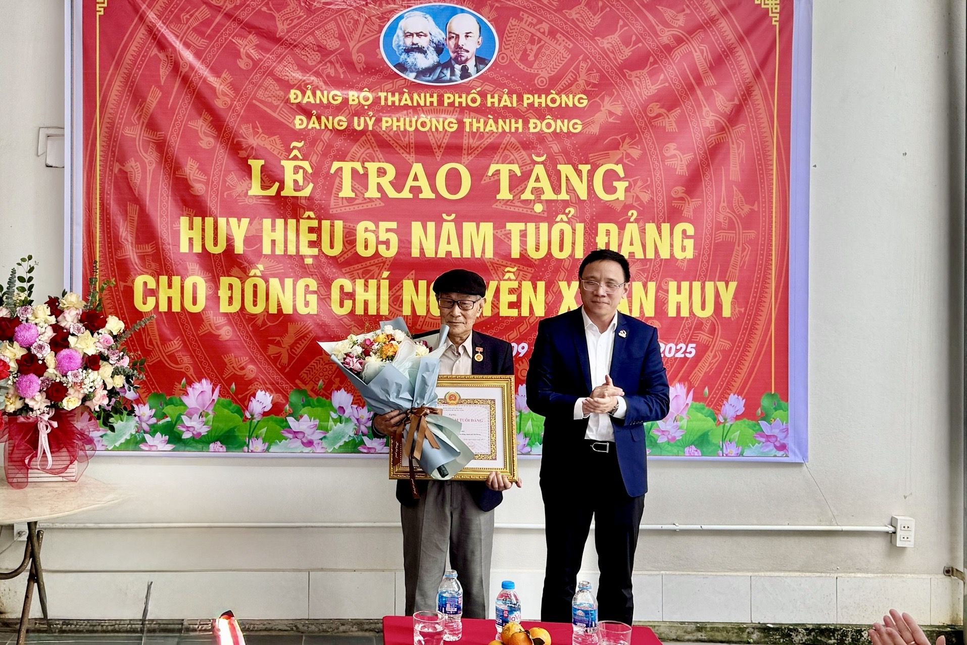 Trao huy hiệu 65 năm tuổi Đảng cho đảng viên Nguyễn Xuân Huy, 87 tuổi, trú tại Tổ dân phố 16, phường Thành Đông, Phó Chủ tịch Thường trực HĐND thành phố Đào Trọng Đức bày tỏ sự trân trọng với quá trình cống hiến của ông Nguyễn Xuân Huy, một đảng viên trưởng thành từ hoạt động công nhân tại Nhà máy sứ Hải Dương. Đồng chí Đào Trọng Đức mong đảng viên Nguyễn Xuân Huy tiếp tục giữ vững phẩm chất người đảng viên cộng sản, có những đóng góp vào công tác xây dựng Đảng, chính quyền, mặt trận, đoàn thể tại địa phương; động viên con cháu góp sức xây dựng phường Thành Đông và thành phố Hải Phòng ngày càng giàu đẹp – văn minh.