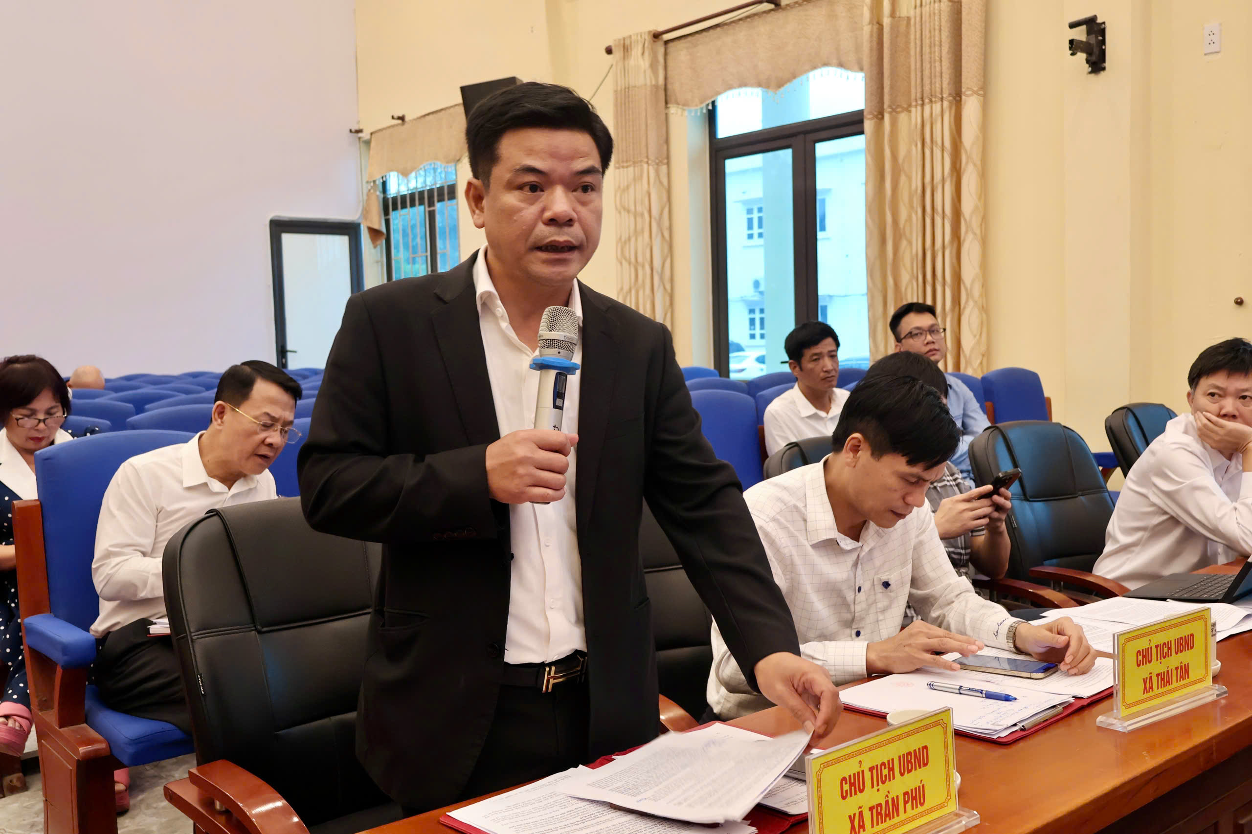 Lãnh đạo xã Trần Phú báo cáo tại buổi làm việcQua kiểm tra thực tế và nghe báo cáo, Phó Chủ tịch UBND thành phố Trần Văn Quân ghi nhận sự nỗ lực của các địa phương trong công tác vận hành mô hình chính quyền địa phương hai cấp thời gian qua. Phó Chủ tịch UBND thành phố đề nghị các địa phương tiếp tục thực hiện chủ trương của Trung ương, chỉ đạo của Thành ủy và UBND thành phố, phối hợp với các sở, ngành theo lĩnh vực chuyên môn để tháo gỡ vướng mắc, khó khăn trong quá trình thực hiện nhiệm vụ. Bên cạnh đó, đồng chí đề nghị các địa phương tiếp tục nâng cao hiệu quả vận hành mô hình chính quyền hai cấp, cải thiện chất lượng phục vụ người dân, nhất là trong lĩnh vực quản lý đất đai, đầu tư xây dựng và hoạt động của trung tâm phục vụ hành chính công.
