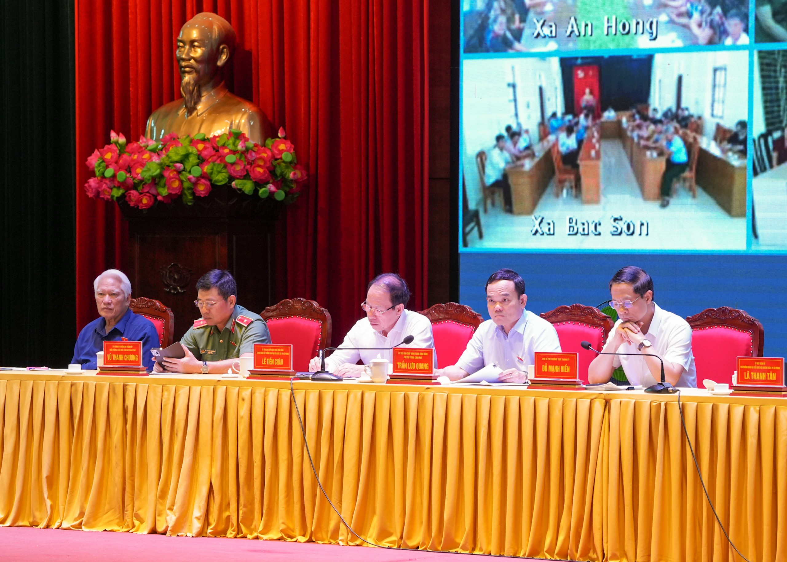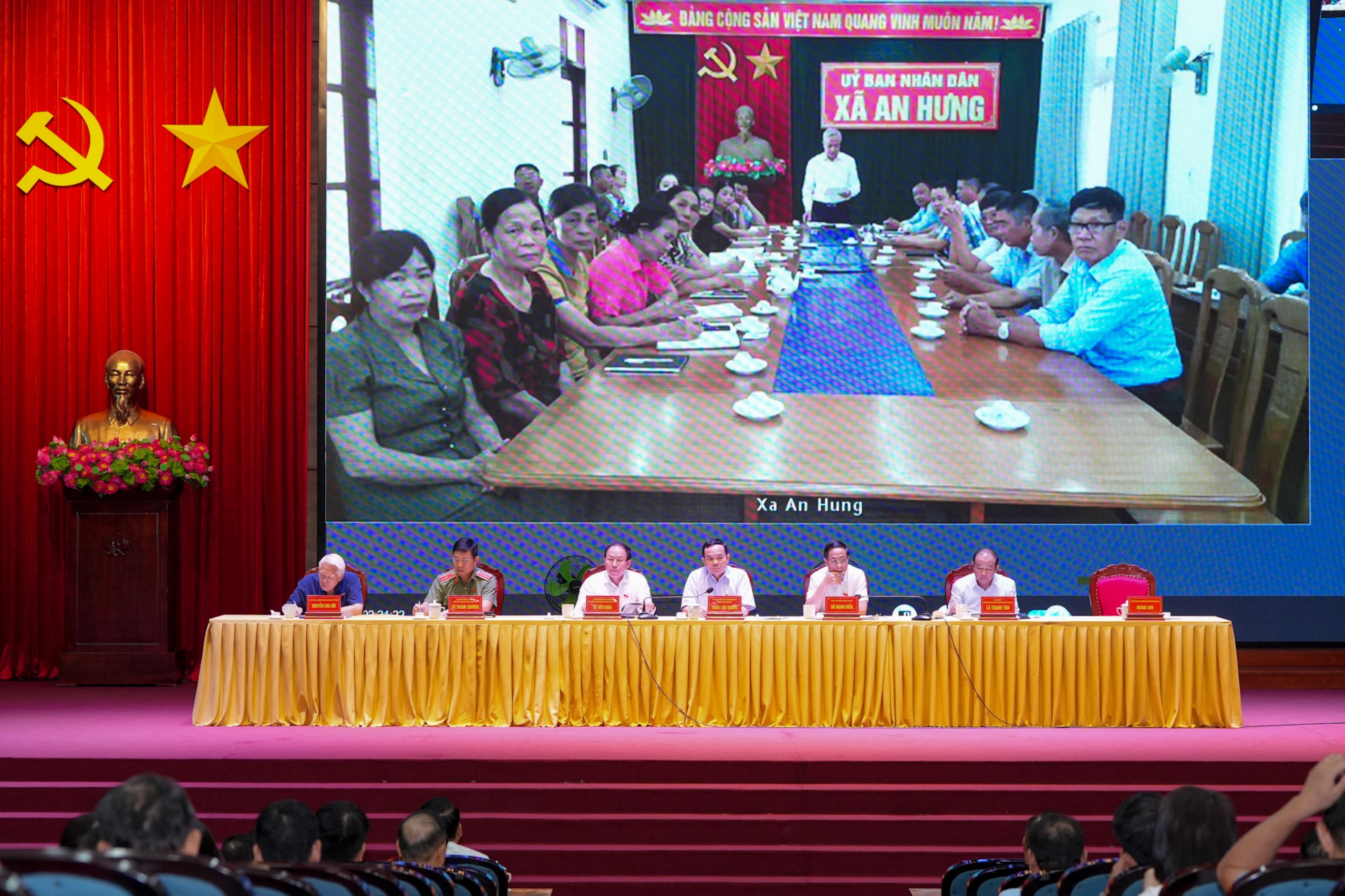 (Haiphong.gov.vn) - Sáng 2/7, Phó Thủ tướng Chính Phủ Trần Lưu Quang cùng các đồng chí Lê Tiến Châu, Uỷ viên Trung ương Đảng, Bí thư Thành uỷ, Trưởng Đoàn đại biểu Quốc hội thành phố; Đỗ Mạnh Hiến, Phó Bí thư Thường trực Thành uỷ; Vũ Thanh Chương, Uỷ viên Ban Thường vụ Thành uỷ, Giám đốc Công an thành phố; Lã Thanh Tân, Phó Trưởng Đoàn đại biểu Quốc hội chuyên trách thành phố; Nguyễn Chu Hồi, Phó Chủ tịch Thường trực Hội Nghề cá Việt Nam tiếp xúc cử tri báo cáo kết quả Kỳ họp thứ Bảy, Quốc hội khoá XV tại huyện An Dương theo hình thức trực tiếp kết hợp trực tuyến.
