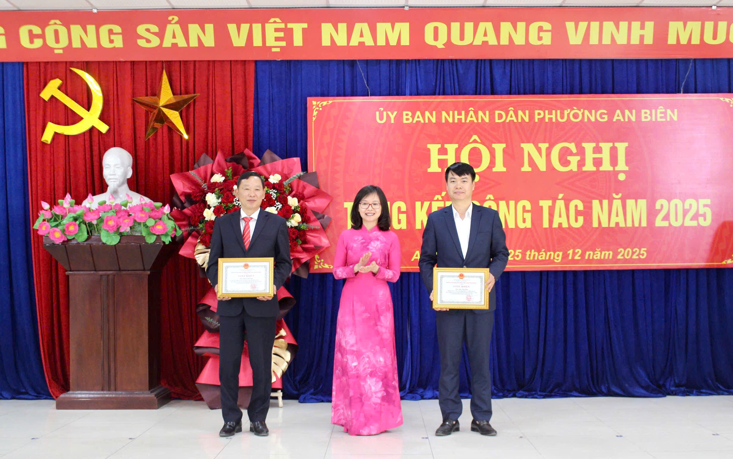 (Haiphong.gov.vn) - Chiều 25/12, UBND phường An Biên tổ chức Hội nghị tổng kết thực hiện nhiệm vụ phát triển kinh tế - xã hội, quốc phòng - an ninh năm 2025 và triển khai một số nhiệm vụ, giải pháp năm 2026.