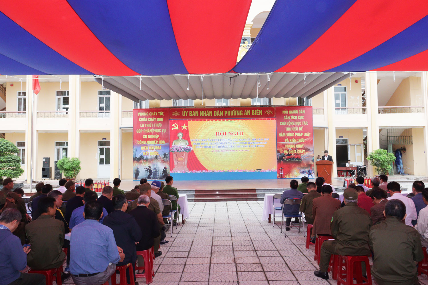 Các đại biểu dự Hội nghị.Trong khuôn khổ chương trình, phường An Biên đã phát tài liệu ký cam kết thực hiện tốt công tác PCCC giữa các Tổ dân phố, thể hiện tinh thần trách nhiệm và quyết tâm của chính quyền cơ sở cùng nhân dân trong việc xây dựng khu dân cư an toàn về PCCC. Bên cạnh đó, lực lượng bảo vệ an ninh trật tự tại cơ sở và học sinh Trường THPT Lê Chân được hướng dẫn thực hành thao tác sử dụng bình chữa cháy, xử lý tình huống giả định để rèn luyện kỹ năng ứng phó nhanh, hiệu quả khi xảy ra sự cố.
