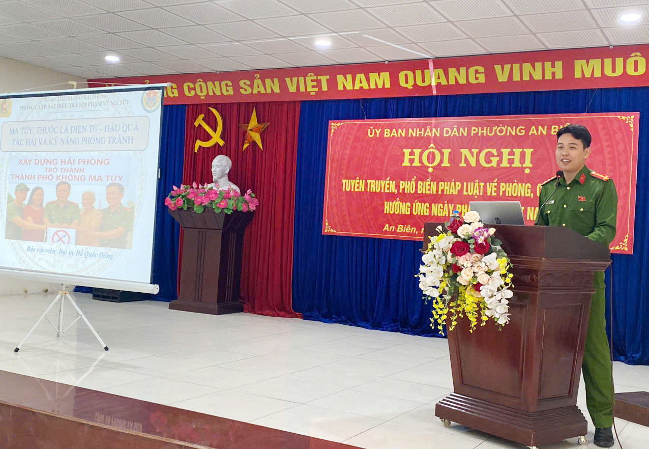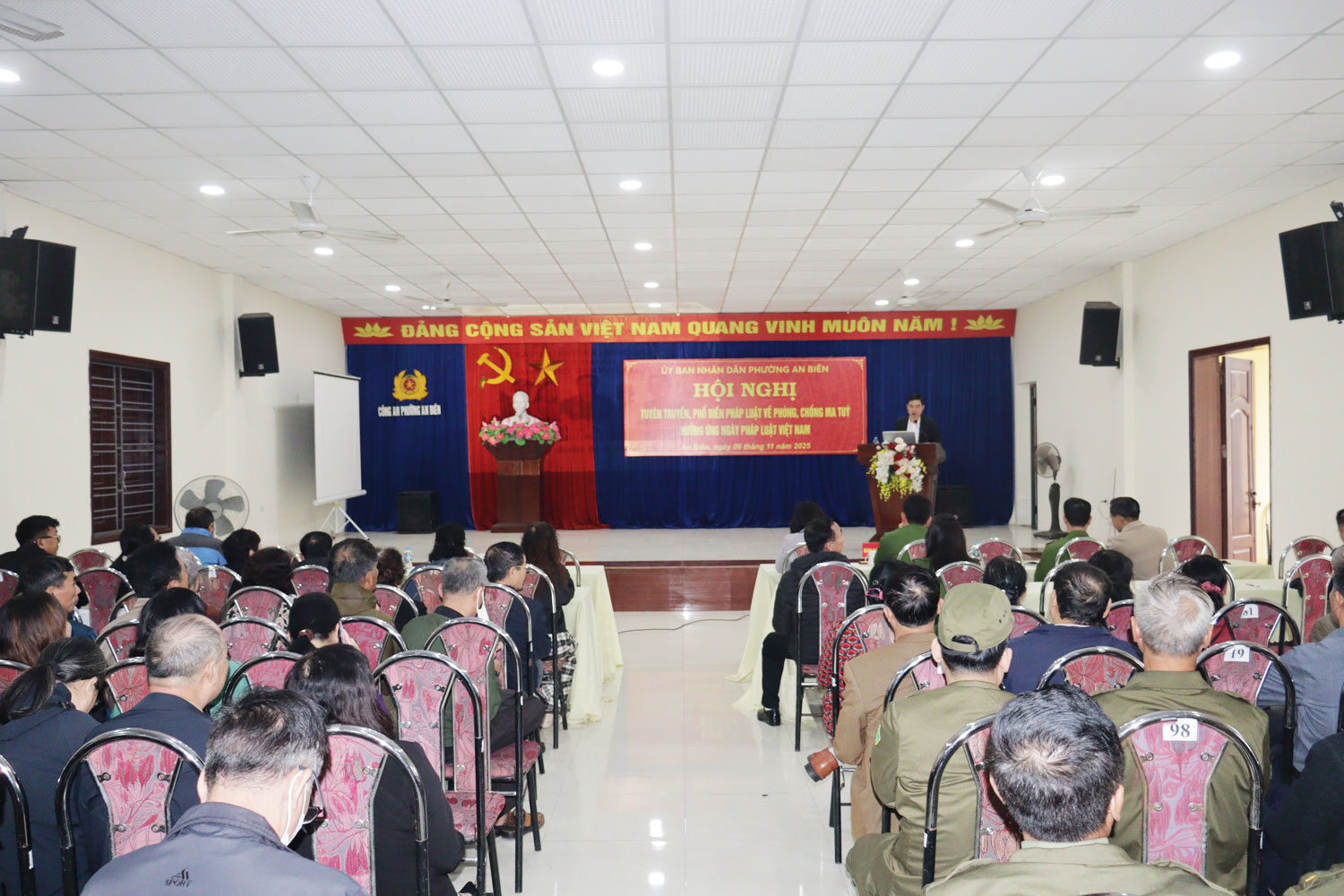 (Haiphong.gov.vn) - Hưởng ứng Ngày Pháp luật Việt Nam năm 2025, sáng 6/11, UBND phường An Biên tổ chức Hội nghị tuyên truyền, phổ biến pháp luật về phòng, chống ma túy cho đội ngũ cán bộ, công chức và Nhân dân trên địa bàn phường. Đồng chí Nguyễn Thị Tịnh, Phó Bí thư Đảng ủy, Chủ tịch UBND phường chủ trì Hội nghị.