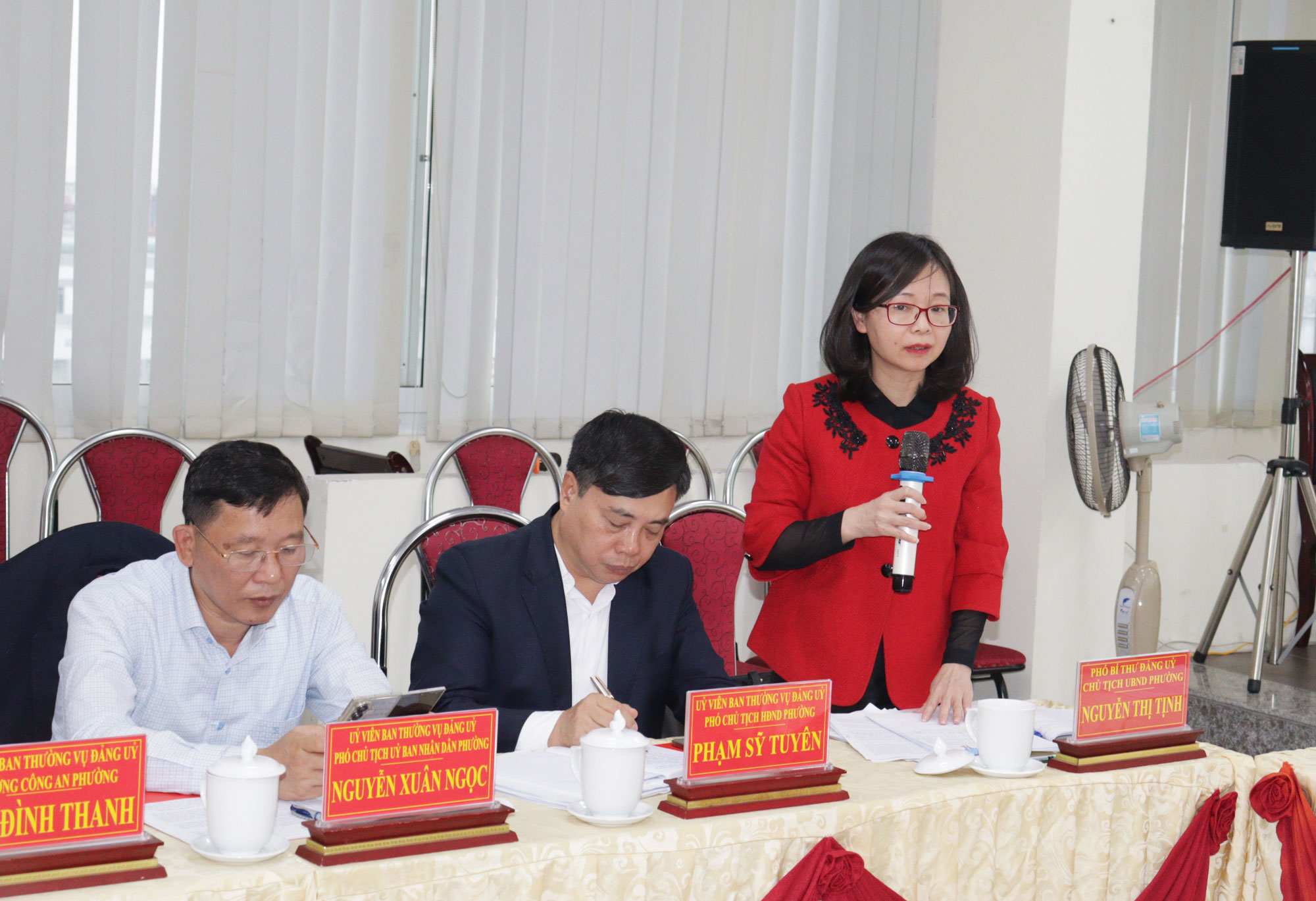 Đồng chí Nguyễn Thị Tịnh, Chủ tịch UBND phường phát biểu tại Hội nghị.Kinh tế - xã hội phường tiếp tục ổn định và phát triển; thu ngân sách tăng trưởng cao, đạt 209% kế hoạch. Công tác quản lý đô thị, đất đai, trật tự xây dựng, môi trường được tăng cường, chuyển biến rõ nét. Các lĩnh vực văn hóa, giáo dục, y tế, an sinh xã hội được quan tâm toàn diện; chính sách đối với người có công và đối tượng xã hội được thực hiện đầy đủ, kịp thời. Công tác cải cách hành chính và chuyển đổi số bám sát kế hoạch đề ra và có nhiều nét mới, tỷ lệ giải quyết hồ sơ đúng hạn được nâng cao, từng bước tạo môi trường phục vụ Nhân dân chuyên nghiệp, minh bạch.