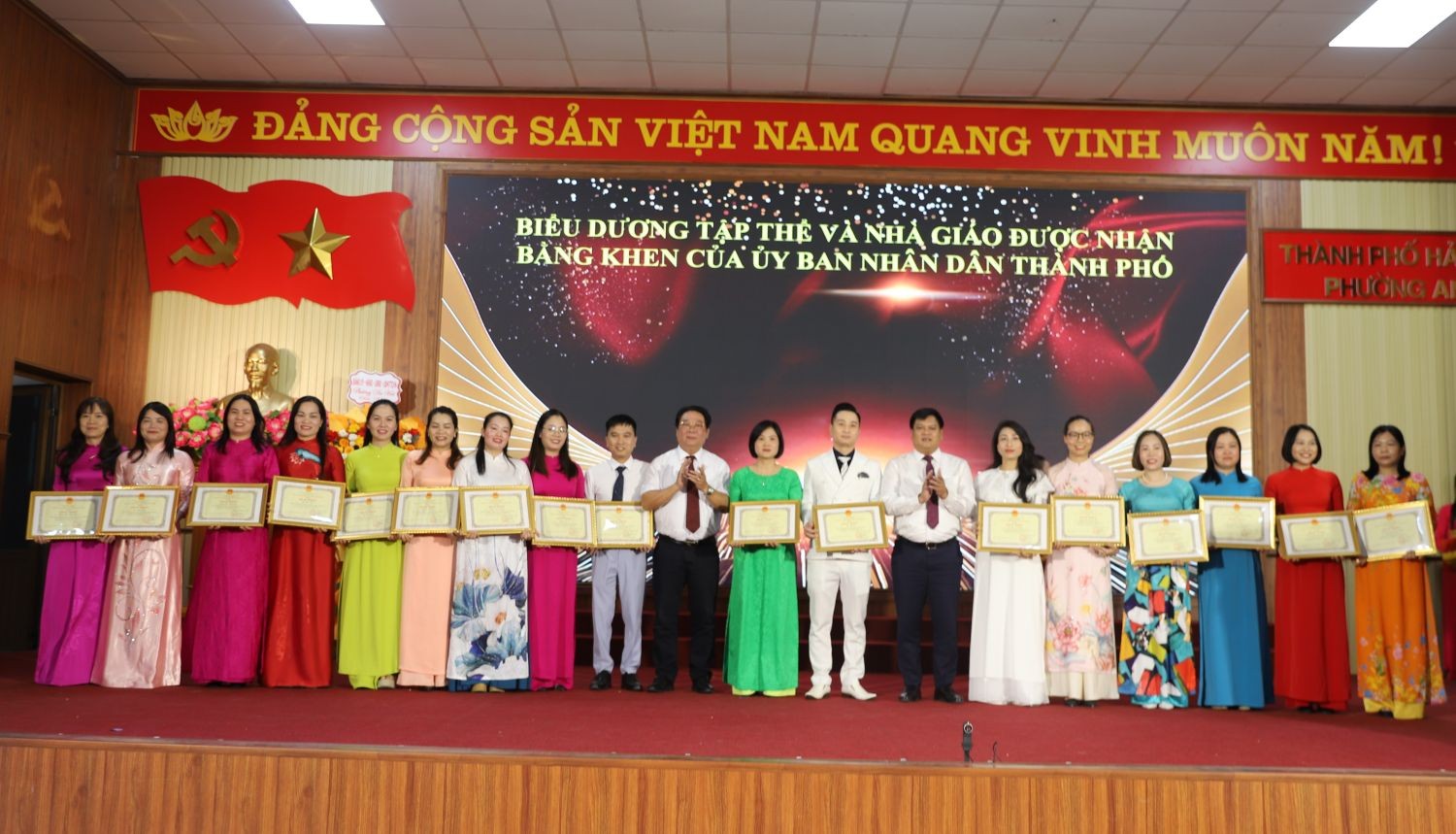 Các tập thể, cá nhân được biểu dương tại Hội nghị.Trong năm học 2024-2025, để ghi nhận những cống hiến của các nhà trường và các thầy cô giáo tâm huyết, Chính phủ tặng bằng khen cho 1 tập thể và 5 cá nhân; Bộ trưởng Bộ Giáo dục và Đào tạo tặng Bằng khen cho 1 tập thể và 2 cá nhân; UBND thành phố công nhận danh hiệu tập thể lao động xuất sắc cho 5 tập thể, Chủ tịch UBND thành phố tặng Bằng khen cho 2 tập thể và 15 cá nhân; 4 chiến sĩ thi đua cấp thành phố, 148 chiến sĩ thi đua cấp cơ sở.