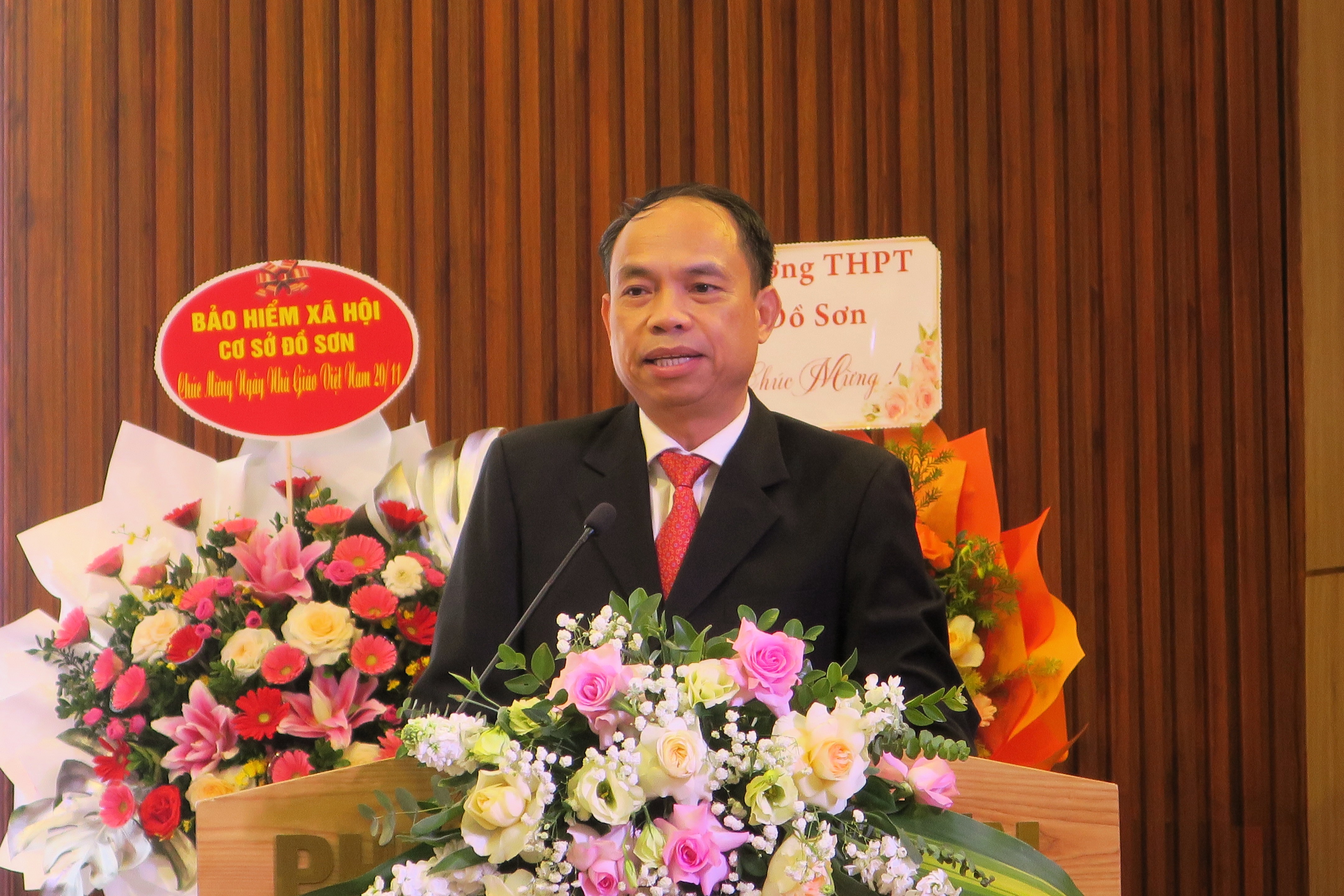 PGS.TS. Nhà giáo ưu tú Lê Quốc Tiến, Bí Thư Đảng uỷ, Chủ tịch HĐND Phường Đồ Sơn phát biểu tri ân các thế hệ nhà giáo phường Đồ Sơn.Phát biểu tại chương trình, PGS.TS. Nhà giáo ưu tú Lê Quốc Tiến, Bí Thư Đảng uỷ, Chủ tịch HĐND phường Đồ Sơn gửi đến các thầy cô giáo lời tri ân sâu sắc, lời chúc mừng tốt đẹp nhất. Đồng chí Bí thư Đảng ủy phường nhấn mạnh, Đồ Sơn hôm nay không chỉ là vùng đất của du lịch, biển cả và truyền thống, mà đang vươn mình mạnh mẽ cùng thành phố Hải Phòng trong kỷ nguyên chuyển đổi số, trí tuệ nhân tạo và hội nhập quốc tế. Nhiệm vụ của ngành Giáo dục và Đào tạo Đồ Sơn vì thế càng nặng nề nhưng cũng thật vẻ vang. Đồng chí Bí thư Đảng ủy phường mong muốn các nhà giáo tiếp nối truyền thống tốt đẹp, giáo dục các em học sinh trở thành người công dân tốt, góp phần dựng xây quê hương, đất nước.