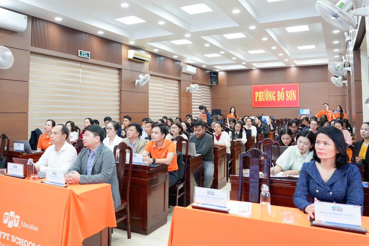 (Haiphong.gov.vn) - UBND phường Đồ Sơn vừa phối hợp với Tập đoàn FPT và Trường THCS - THPT FPT Hải Phòng tổ chức Lớp tập huấn chương trình “Day of AI” cho gần 100 cán bộ quản lý, giáo viên các trường Tiểu học, THCS, TH&THCS trên địa bàn phường, năm học 2025-2026.
