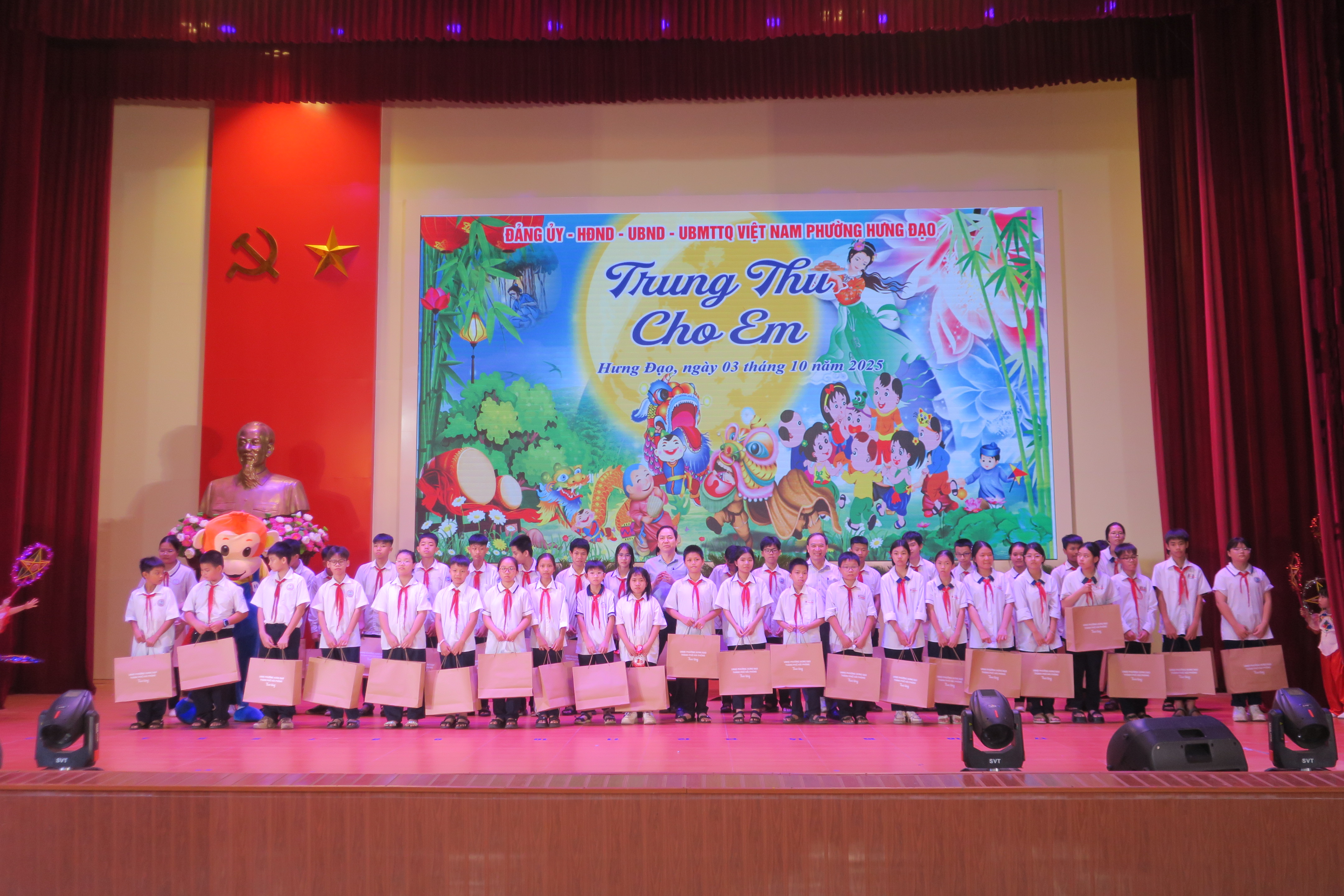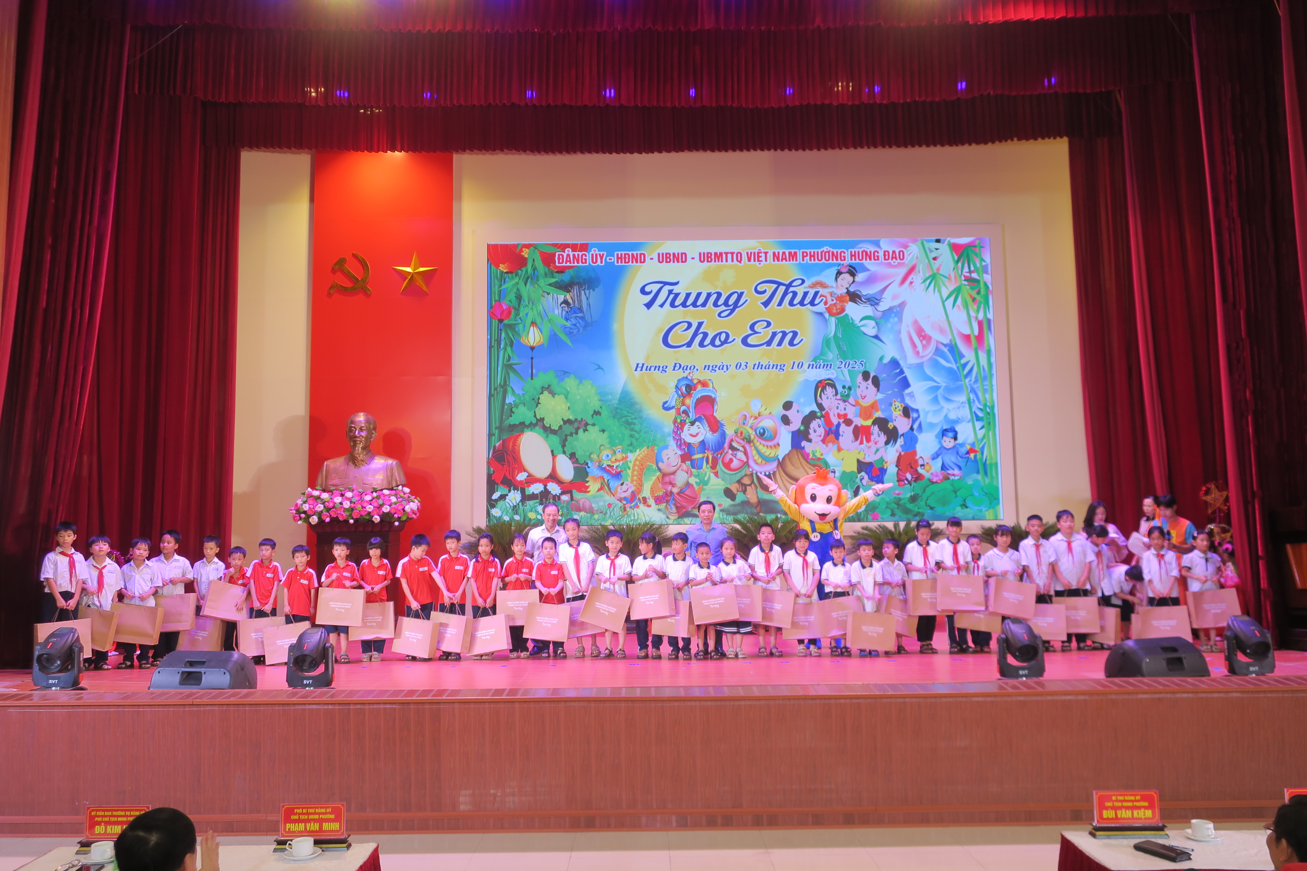 Đồng chí Bùi Văn Kiệm, Bí thư Đảng ủy, Chủ tịch HĐND phường trao quà cho các cháu học sinh chăm ngoan, vượt khó, có thành tích tiêu biểu.Tham dự chương trình, các cháu được thưởng thức các tiết mục văn nghệ, được giao lưu chơi trò chơi, phá cỗ Trung thu và được nhận những món quà ý nghĩa. Đây thực sự là ngày hội, mang đến nhiều niềm vui, phấn khởi cho các cháu. Đồng thời cũng là hoạt động mang giá trị nhân văn sâu sắc, thể hiện sự quan tâm của Đảng, Nhà nước, của chính quyền địa phương và của toàn xã hội đối với sự nghiệp chăm sóc, bảo vệ và giáo dục trẻ em.