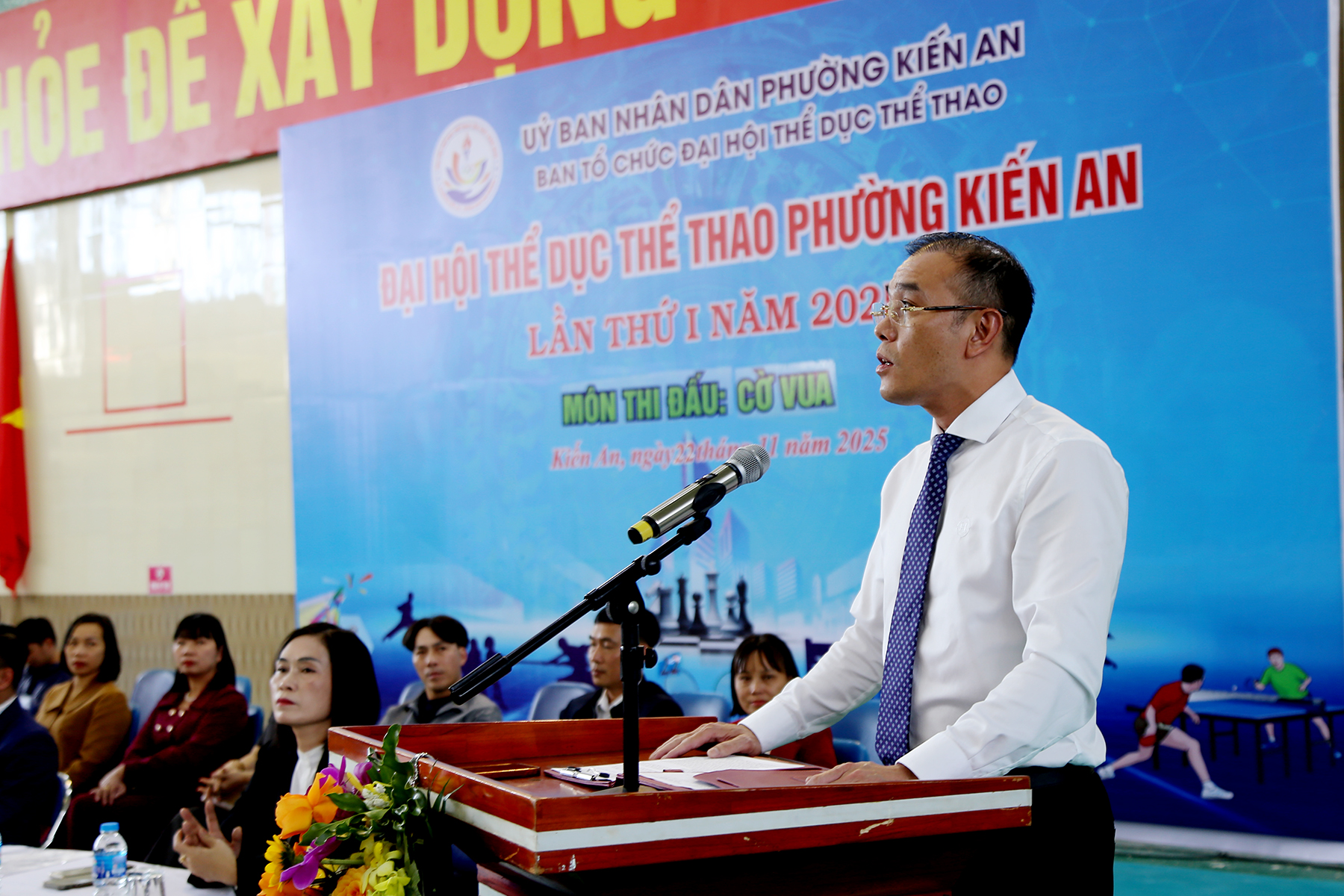 Phó Chủ tịch Thường trực UBND phường Kiến An - Nguyễn Tùng Lâm phát biểu khai mạc giải.Thông qua giải đấu, phường có thêm cơ hội phát hiện và bồi dưỡng những tài năng trẻ, góp phần xây dựng lực lượng vận động viên cho phong trào Cờ vua của địa phương; đồng thời tuyển chọn các vận động viên xuất sắc tham gia thi đấu tại Đại hội Thể dục Thể thao thành phố Hải Phòng lần thứ X, giai đoạn 2025 – 2026. Lãnh đạo phường Kiến An đề nghị các vận động viên thi đấu với tinh thần đoàn kết, nhiệt huyết, trung thực và cao thượng, phấn đấu đạt thành tích cao nhất; tổ trọng tài làm việc công tâm, khách quan, đúng quy định, góp phần bảo đảm thành công của Hội thi.