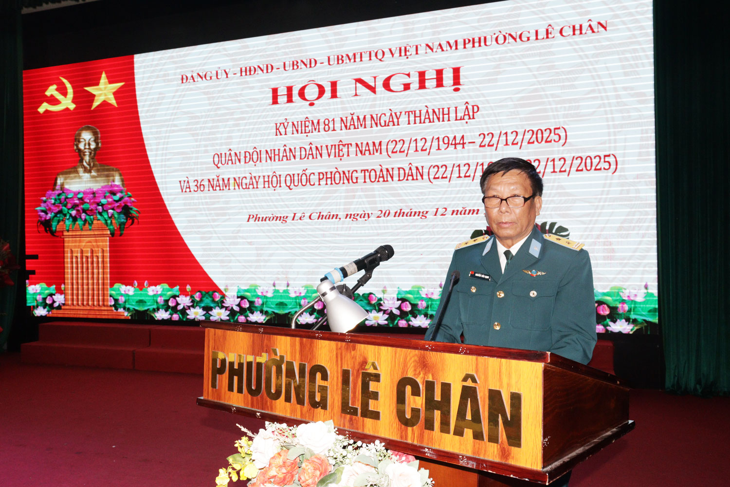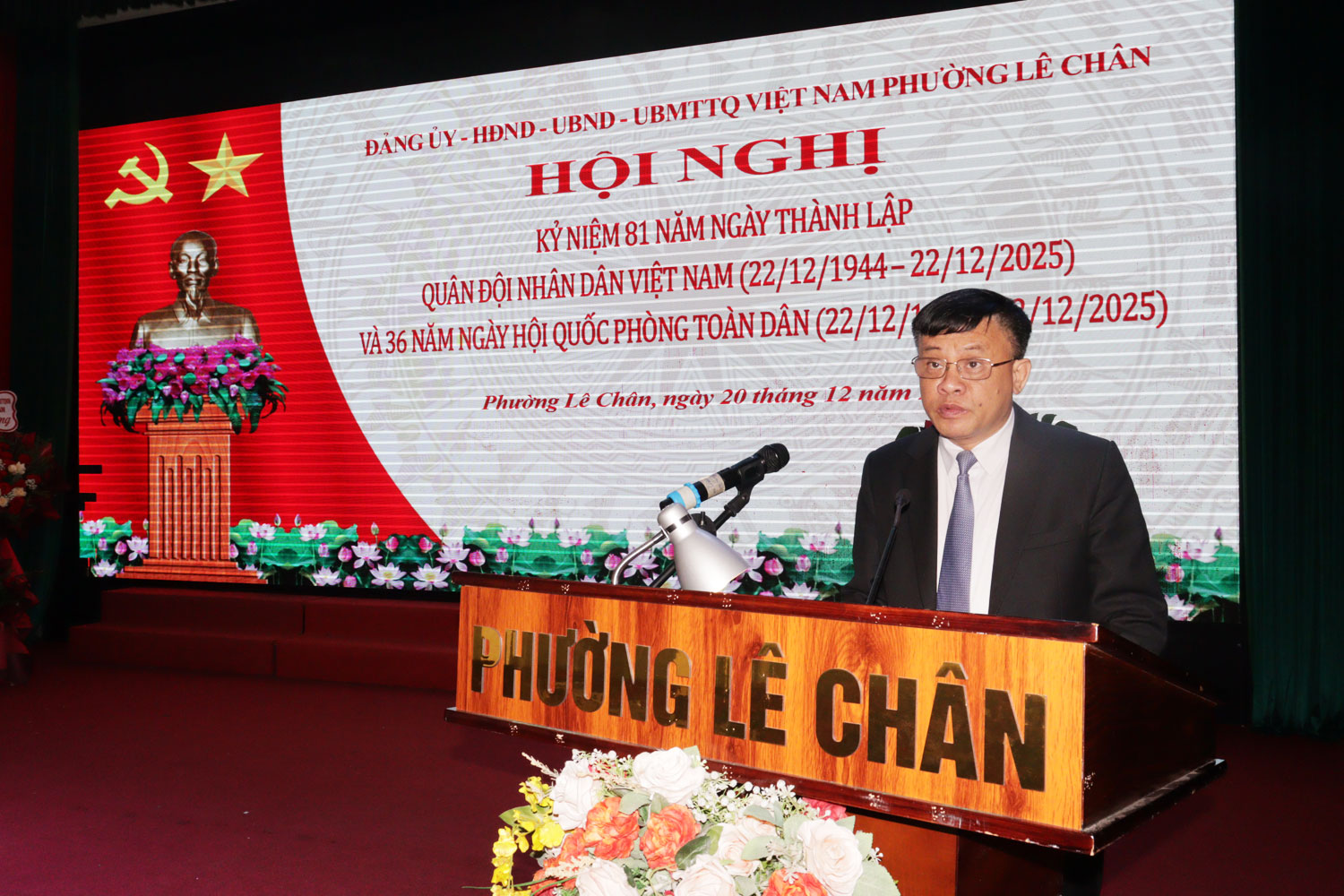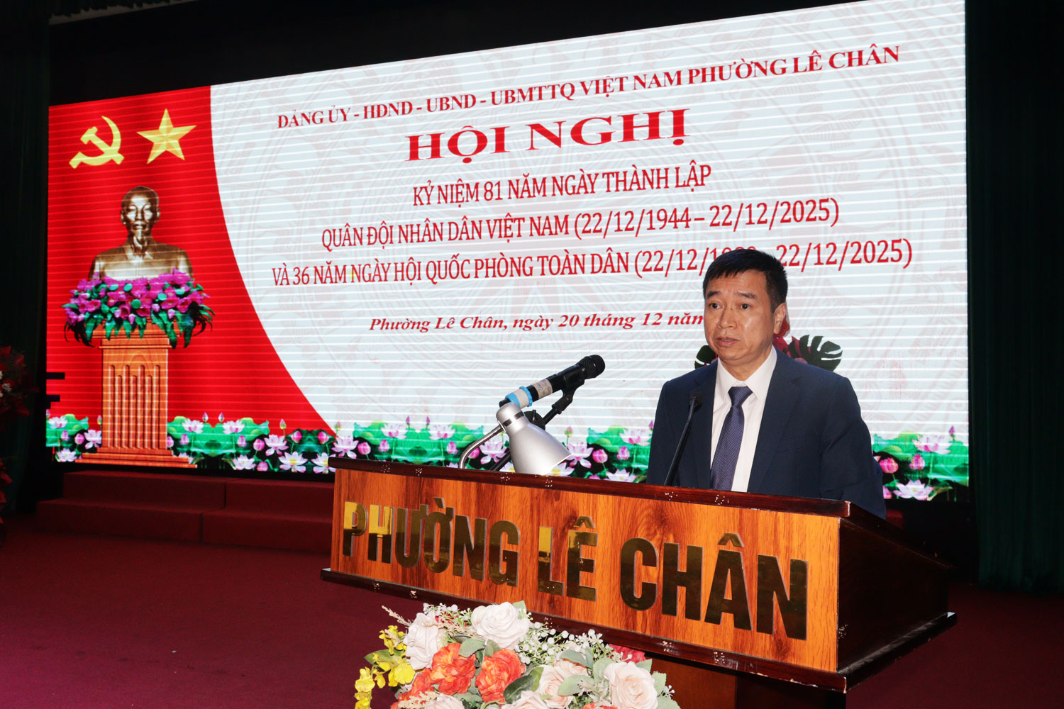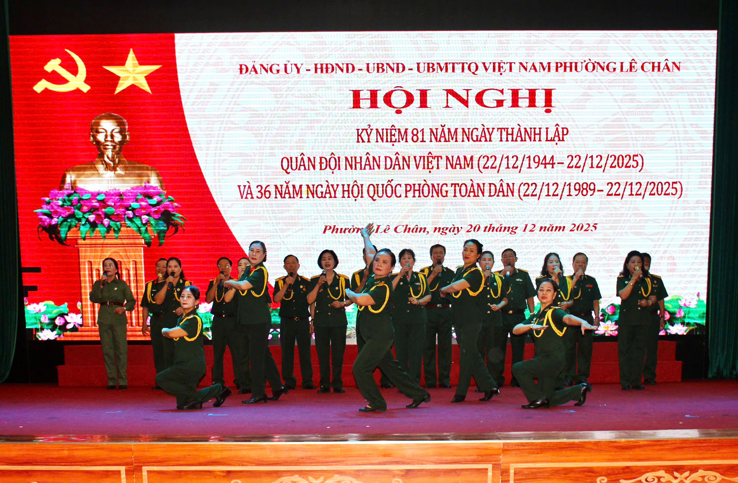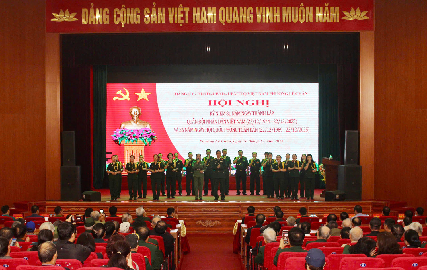 (Haiphong.gov.vn) - Sáng 20/12, Đảng ủy - HĐND - UBND - Ủy ban MTTQ Việt Nam phường Lê Chân tổ chức gặp mặt kỷ niệm 81 năm Ngày thành lập Quân đội nhân dân Việt Nam (22/12/1944 - 22/12/2025) và 36 năm Ngày hội Quốc phòng toàn dân (22/12/1989 - 22/12/2025).