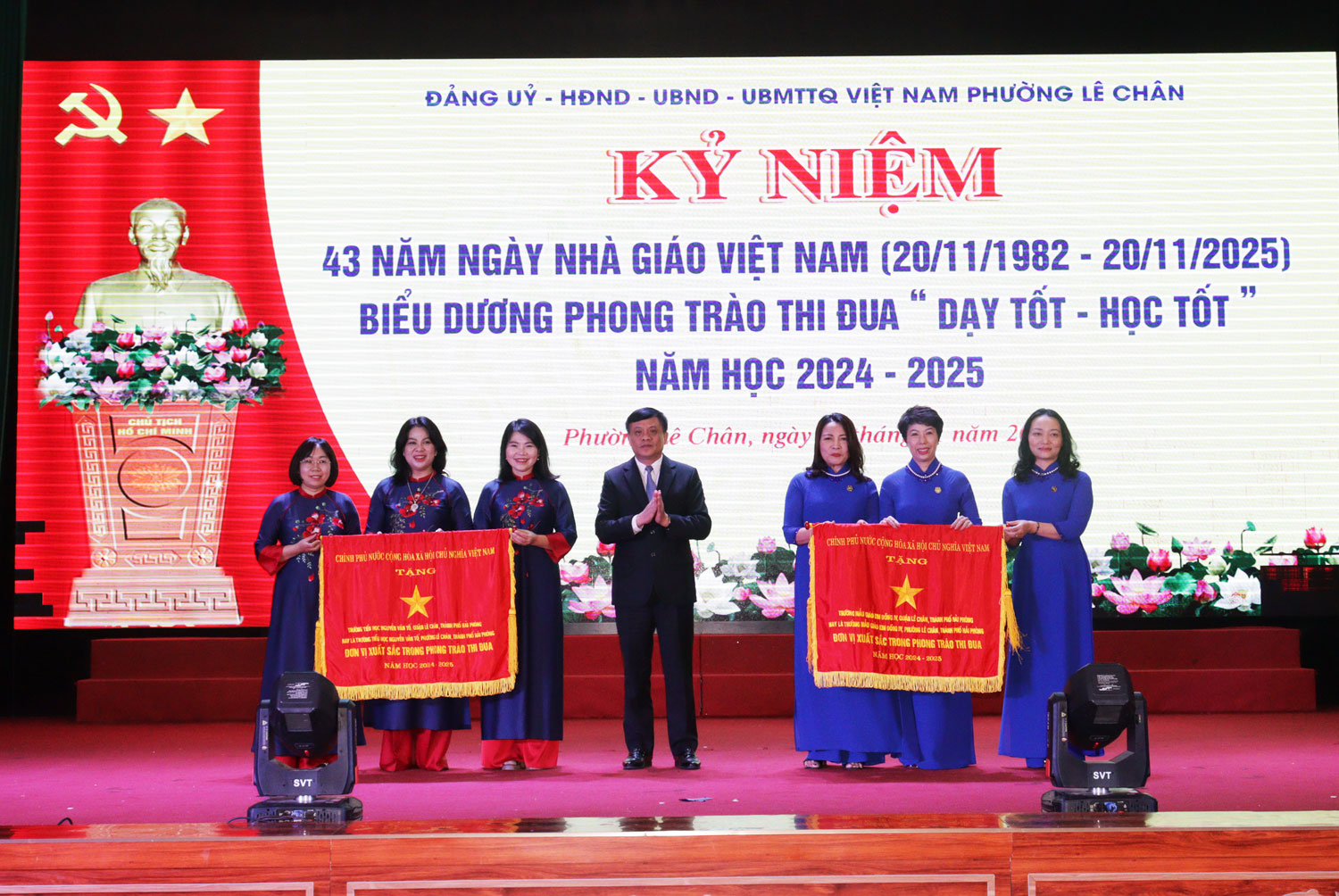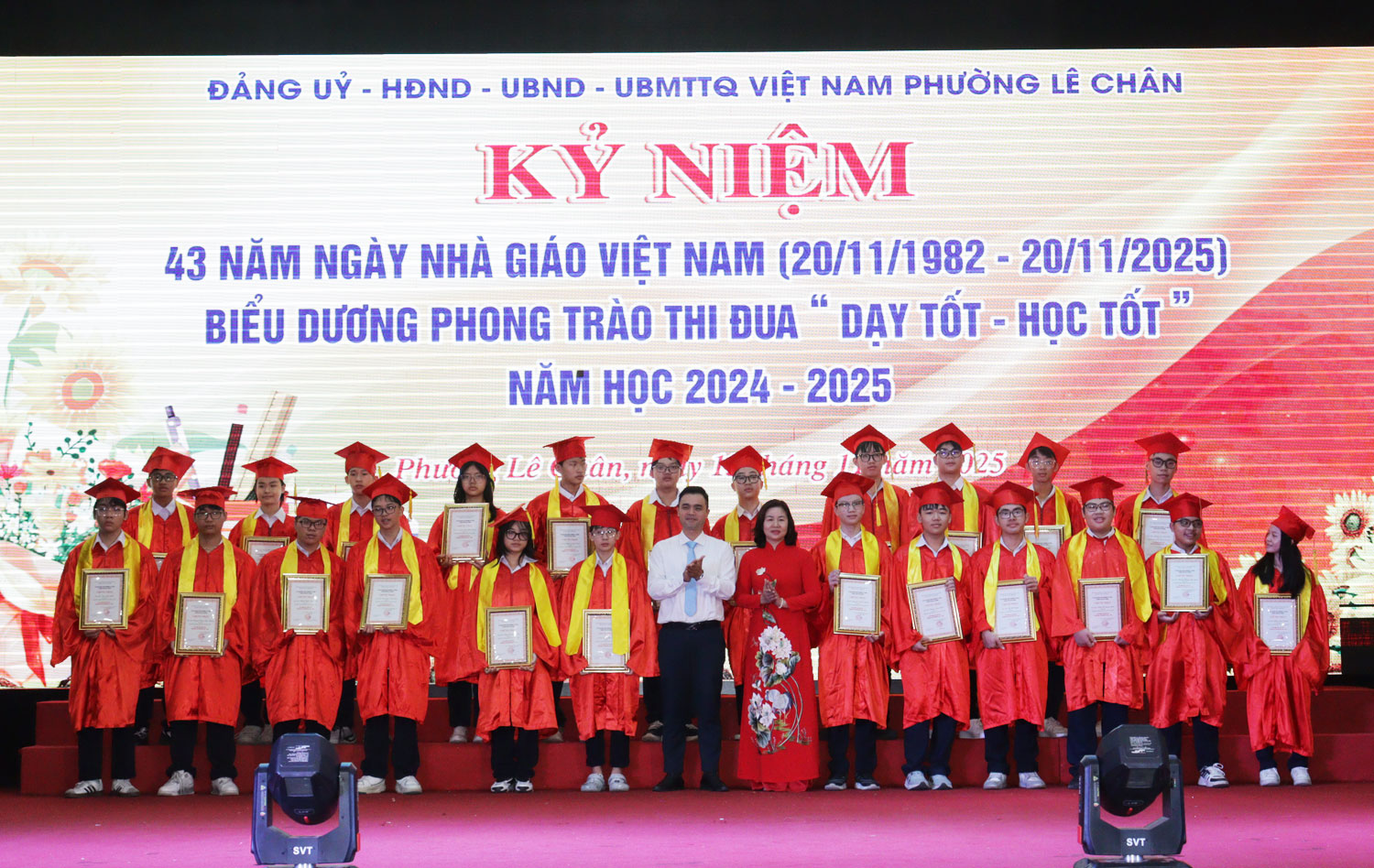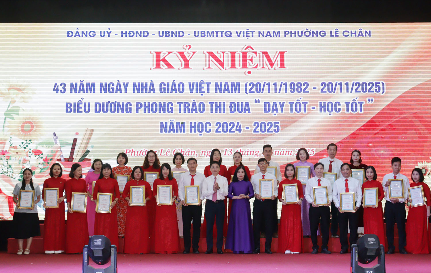 (Haiphong.gov.vn) - Sáng 13/11, Đảng ủy - HĐND - UBND - Ủy ban MTTQ Việt Nam phường Lê Chân tổ chức kỷ niệm 43 năm Ngày Nhà giáo Việt Nam (20/11/1982 - 20/11/2025) và biểu dương phong trào thi đua “Dạy tốt - Học tốt” năm học 2024 - 2025.