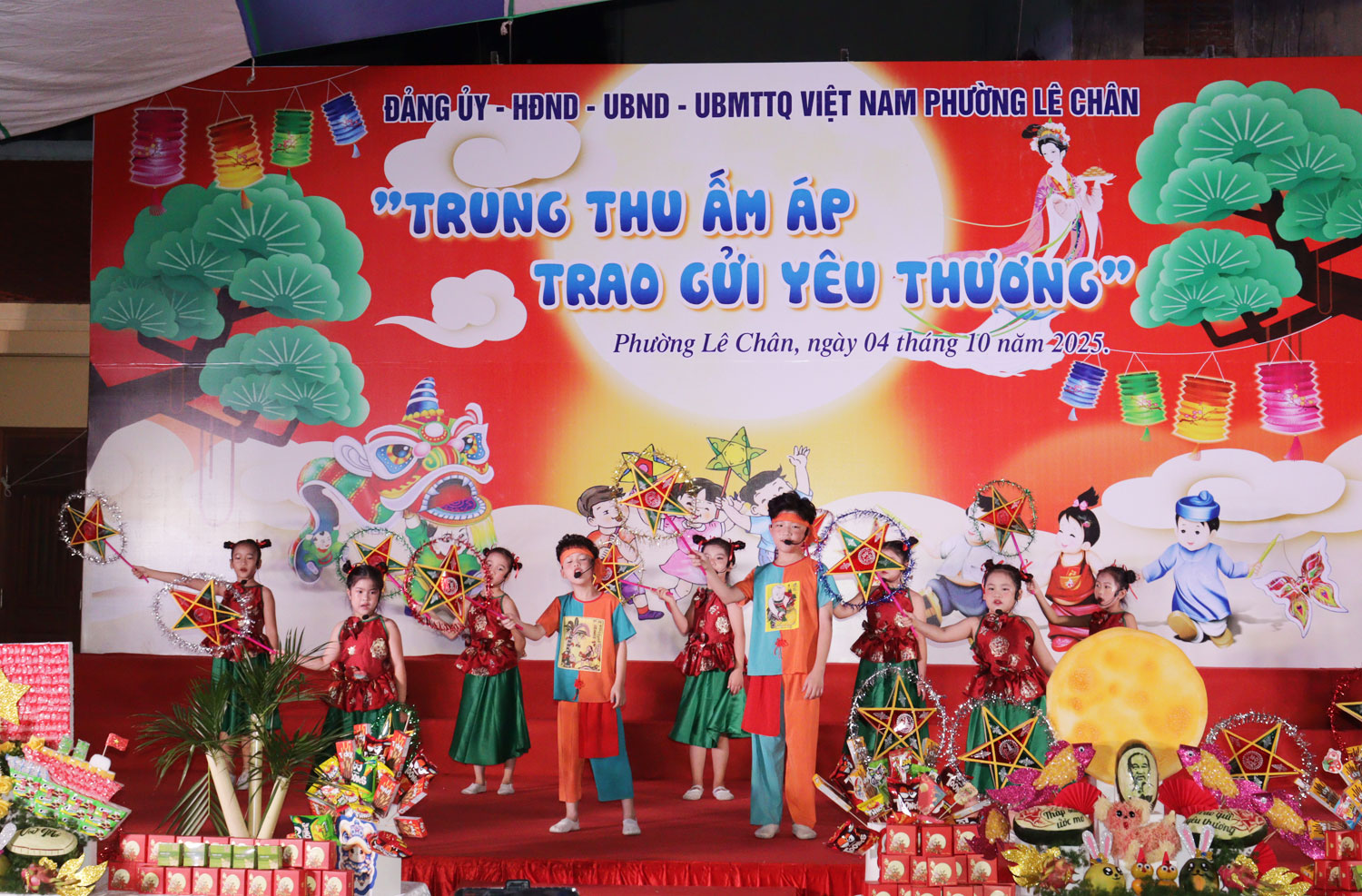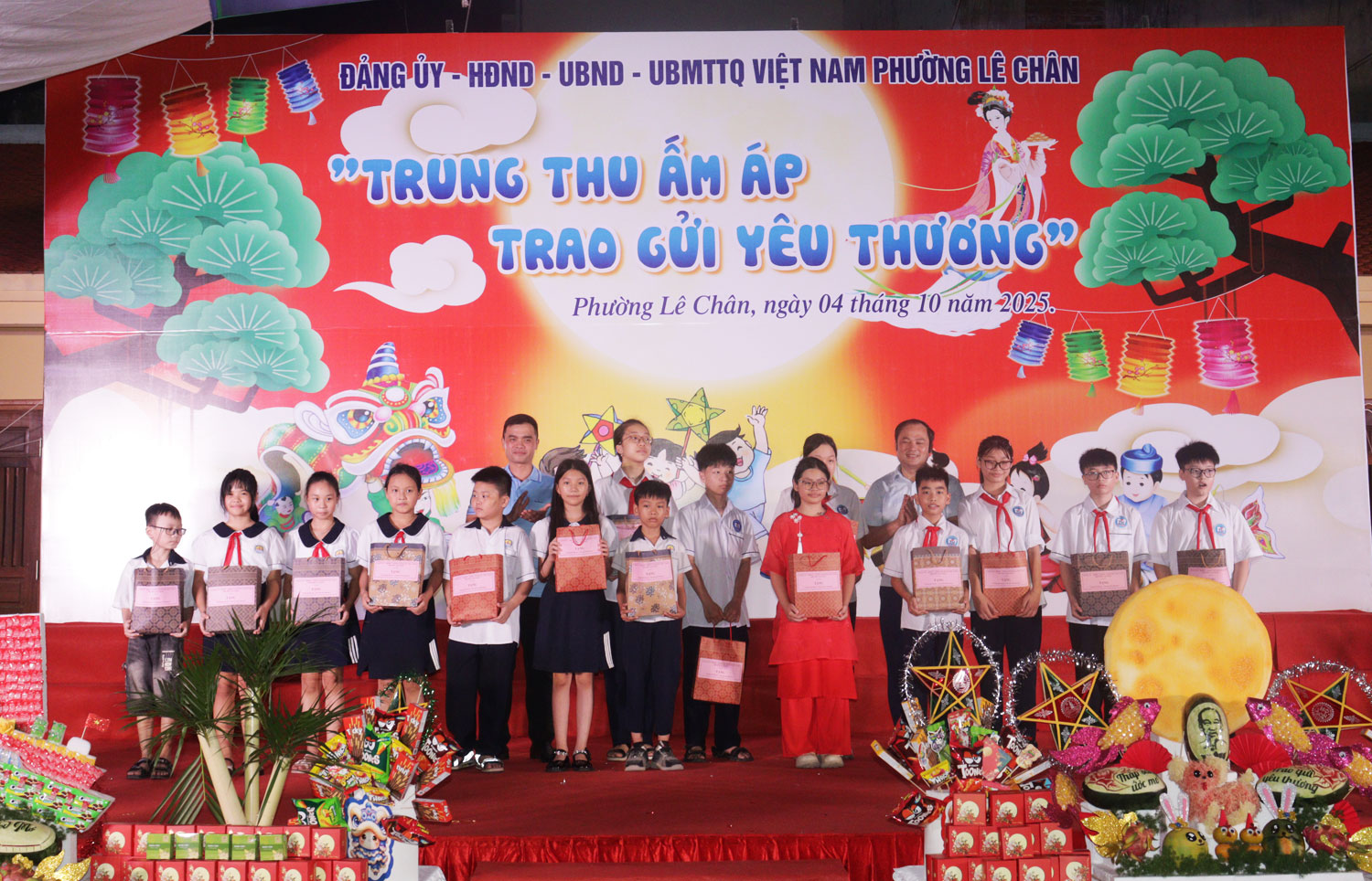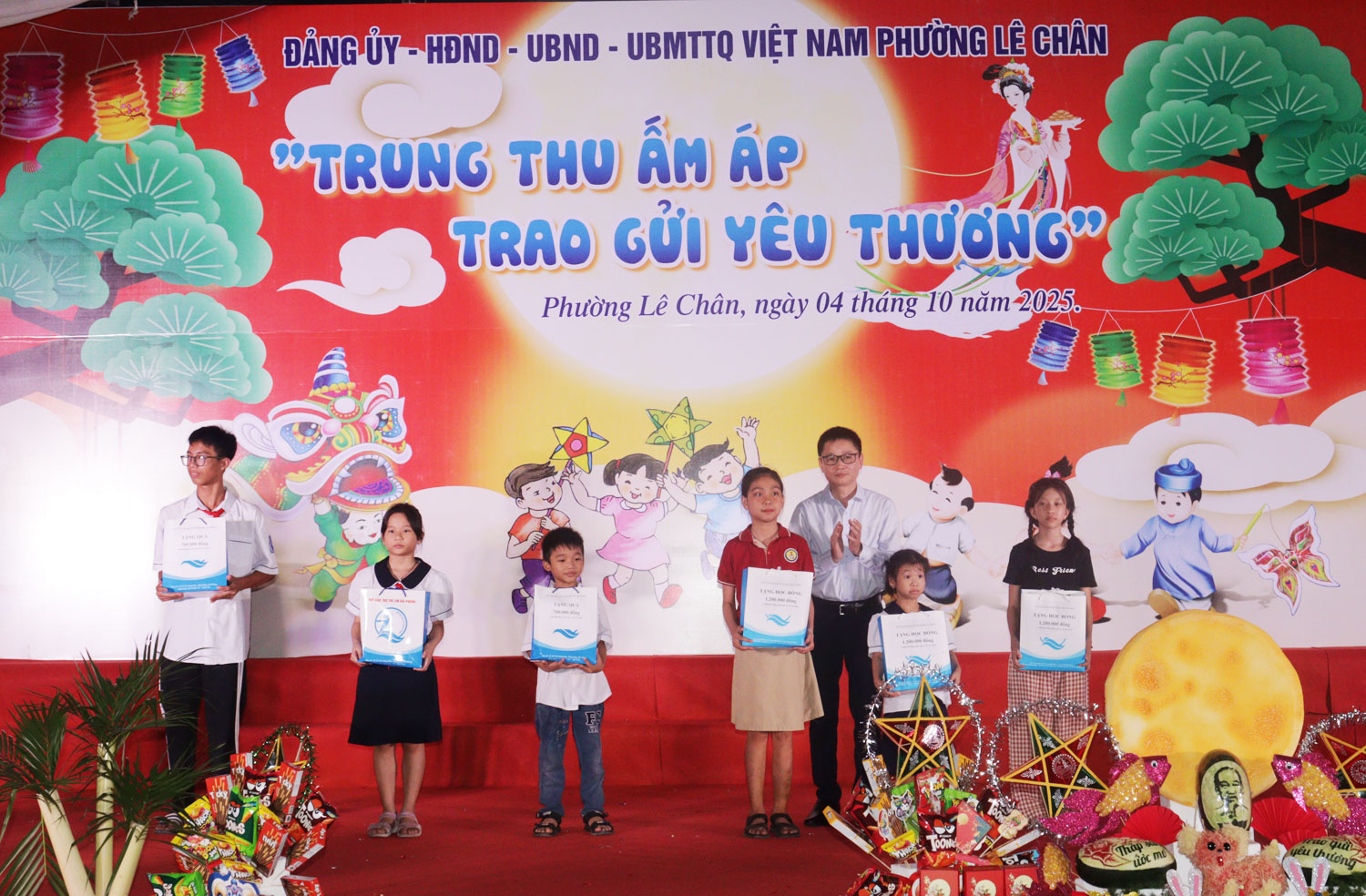 Trao quà Trung thu cho các em thiếu nhi trên địa bàn phường.Dịp này, các đồng chí lãnh đạo phường Lê Chân đã trao học bổng cho các em nhỏ có hoàn cảnh khó khăn; đồng thời trao quà Trung thu cho các em thiếu nhi trên địa bàn phường, mang đến một Tết Trung thu đầm ấm, an toàn và ý nghĩa.
