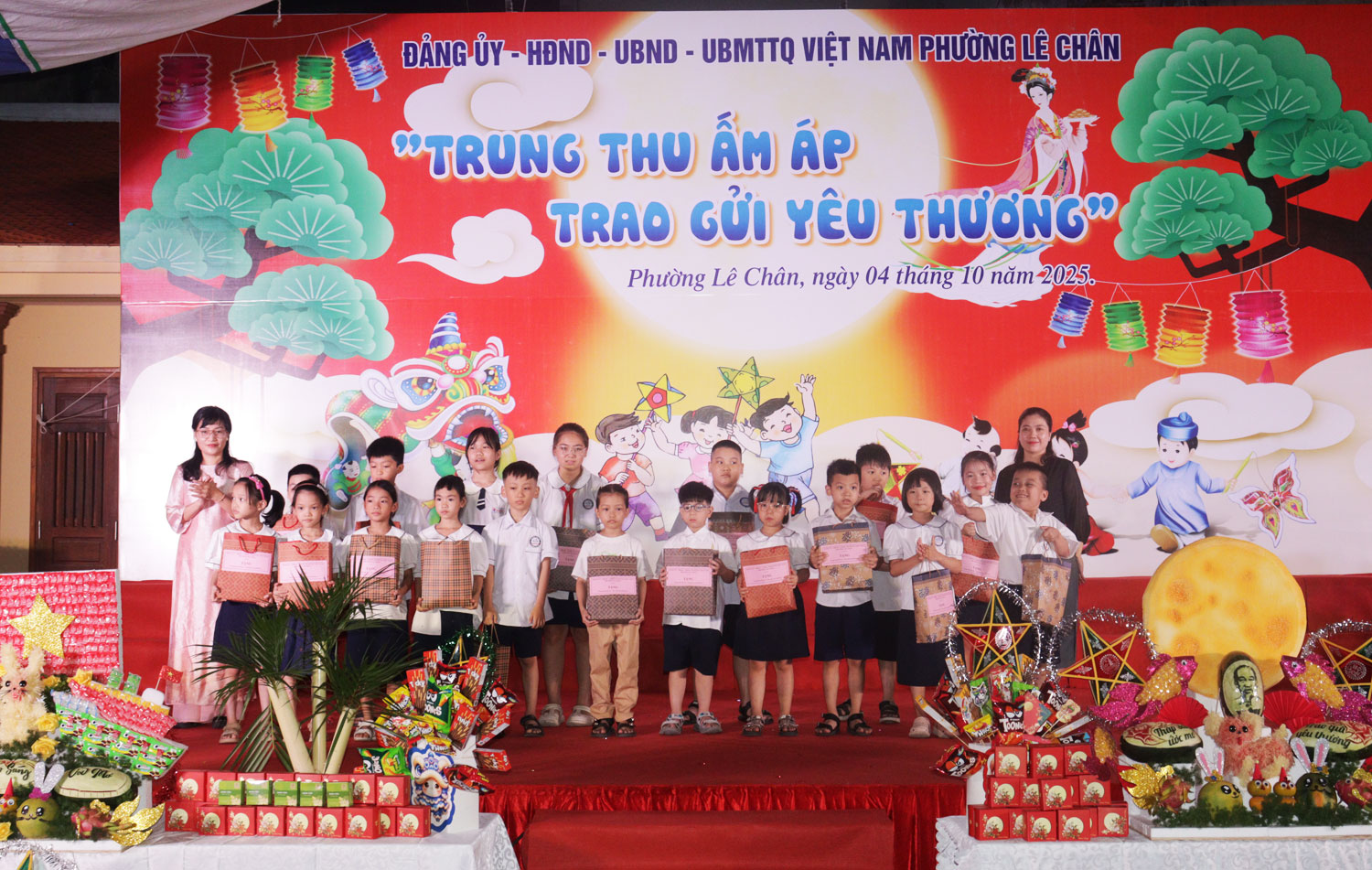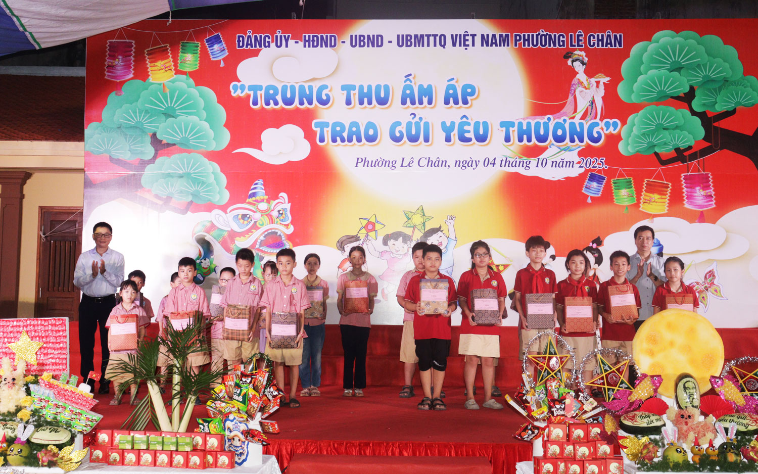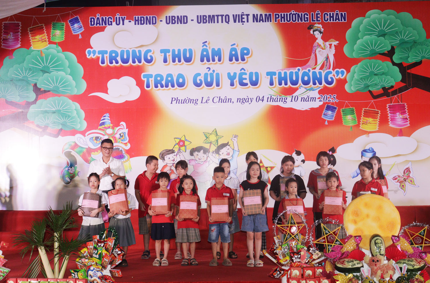 Trao quà Trung thu cho các em thiếu nhi trên địa bàn phường.Dịp này, các đồng chí lãnh đạo phường Lê Chân đã trao học bổng cho các em nhỏ có hoàn cảnh khó khăn; đồng thời trao quà Trung thu cho các em thiếu nhi trên địa bàn phường, mang đến một Tết Trung thu đầm ấm, an toàn và ý nghĩa.