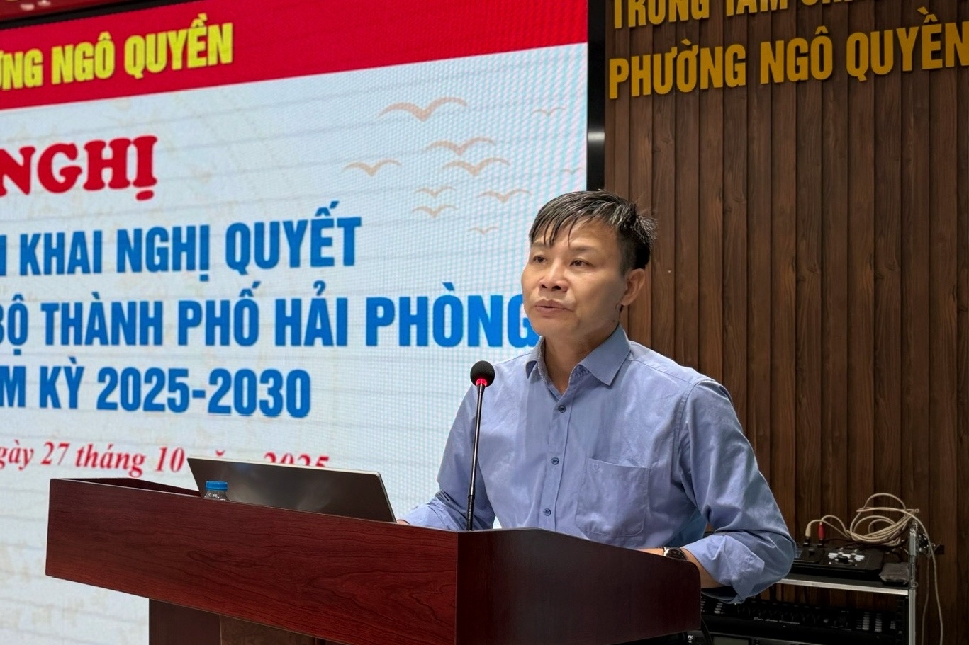 (Haiphong.gov.vn) – Phường Ngô Quyền vừa tổ chức Hội nghị Báo cáo viên tháng 10 quán triệt, triển khai Nghị quyết Đại hội Đại biểu Đảng bộ thành phố Hải Phòng lần thứ I, nhiệm kỳ 2025–2030 và Chương trình hành động của Ban Chấp hành Đảng bộ phường thực hiện Nghị quyết Đại hội Đảng bộ phường lần thứ I, nhiệm kỳ 2025–2030.