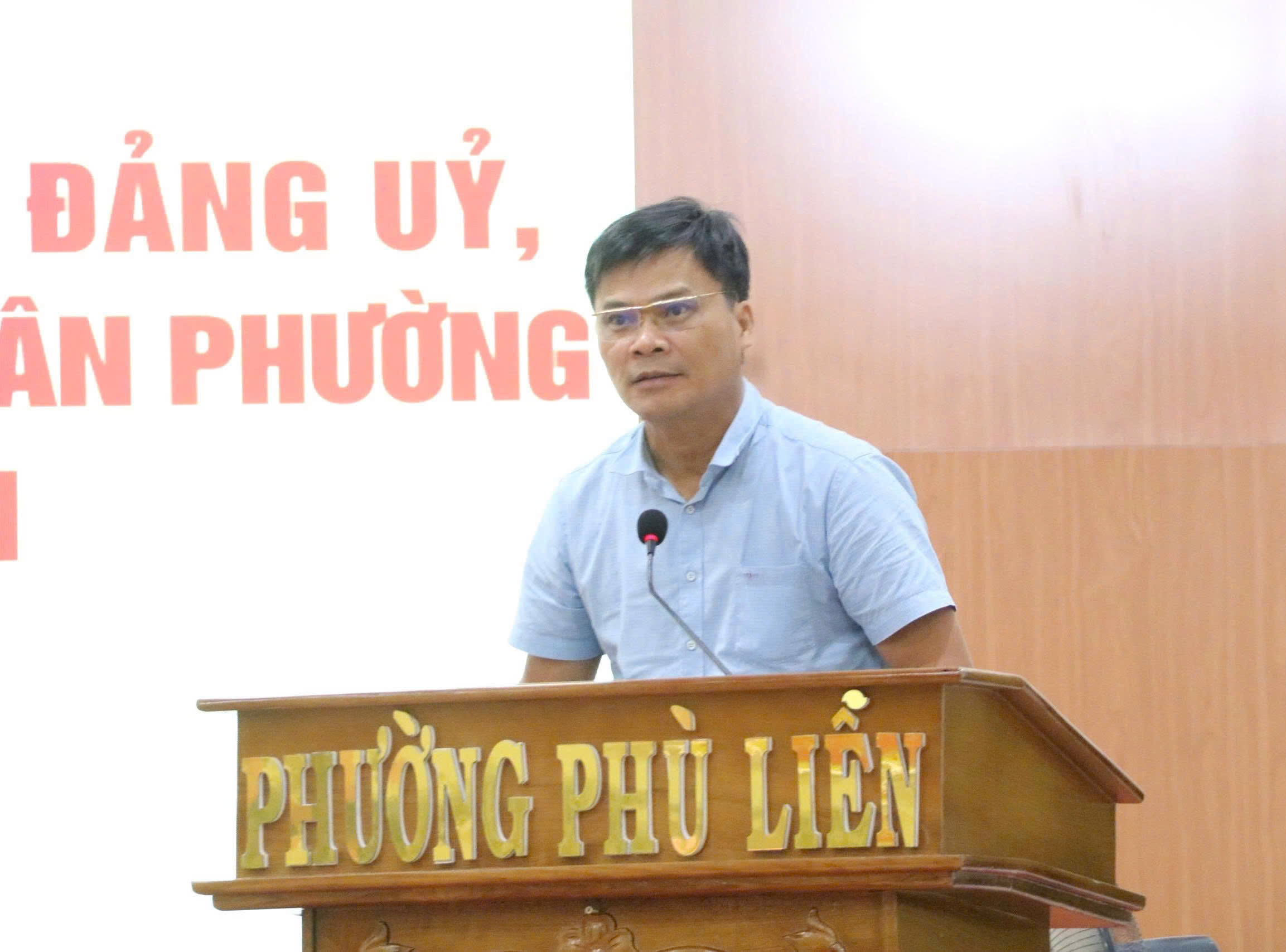 Lãnh đạo các phòng, ban, đơn vị phường Phù Liễn trực tiếp giải đáp các ý kiến, kiến nghị của Nhân dân tại Hội nghị.Tại Hội nghị, Chủ tịch UBND phường Phạm Văn Diện cùng lãnh đạo các phòng, ban, đơn vị của phường đã trực tiếp trao đổi, giải đáp cụ thể các ý kiến, kiến nghị của đại biểu và Nhân dân, đồng thời tiếp thu những đề xuất xác đáng để xem xét, đưa vào kế hoạch thực hiện trong thời gian tới.