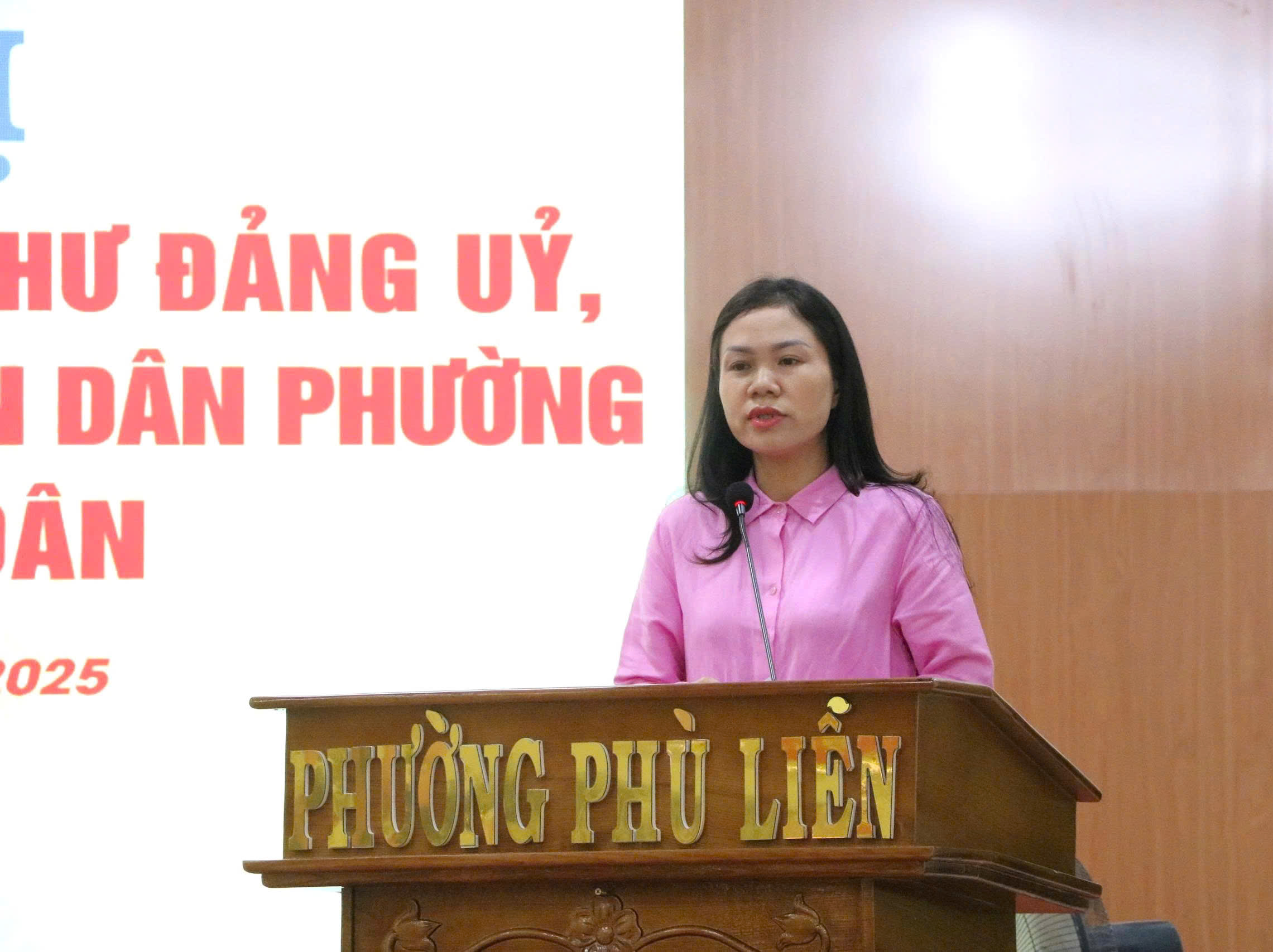Bí thư Đảng ủy, Chủ tịch HĐND phường Phù Liễn Bùi Thị Tuyết Mai phát biểu kết luận tại Hội nghị.Phát biểu kết luận Hội nghị, Bí thư Đảng ủy, Chủ tịch HĐND phường Phù Liễn Bùi Thị Tuyết Mai biểu dương tinh thần thẳng thắn, trách nhiệm của các đại biểu, đồng thời ghi nhận nỗ lực của UBND phường cùng các ban, ngành, đơn vị trong việc trực tiếp đối thoại, giải đáp cụ thể các kiến nghị của Nhân dân.