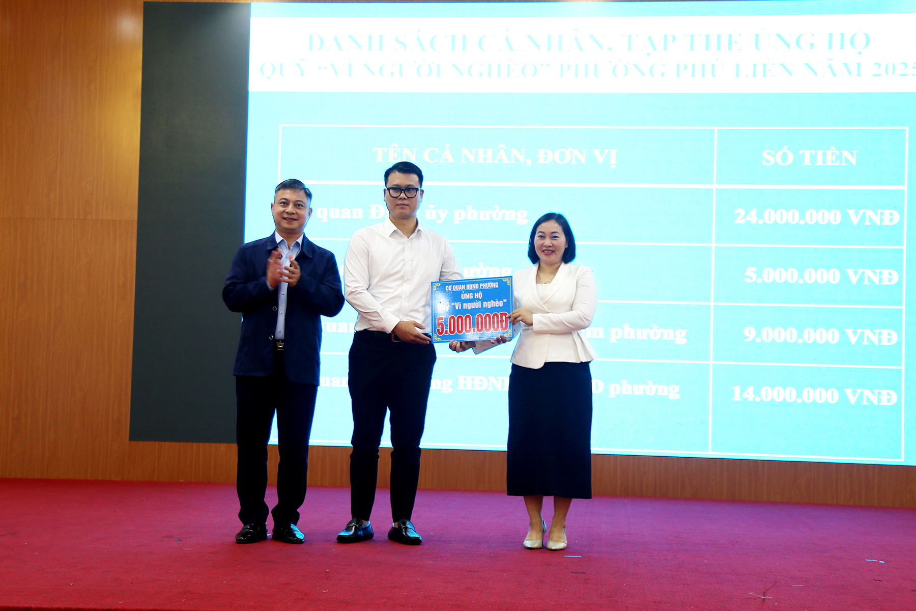 Lãnh đạo phường Phù Liễn cùng các cơ quan, đơn vị, doanh nghiệp, trường học và Tổ dân phố tham gia ủng hộ Quỹ “Vì người nghèo”.Tại Hội nghị, các cơ quan, đơn vị, doanh nghiệp, trường học, tổ dân phố và đông đảo cá nhân đã tích cực hưởng ứng ủng hộ Quỹ “Vì người nghèo” phường Phù Liễn năm 2025, thể hiện tinh thần nhân ái, sẻ chia.