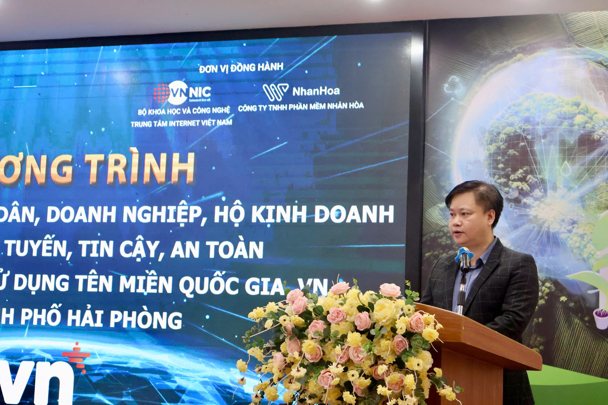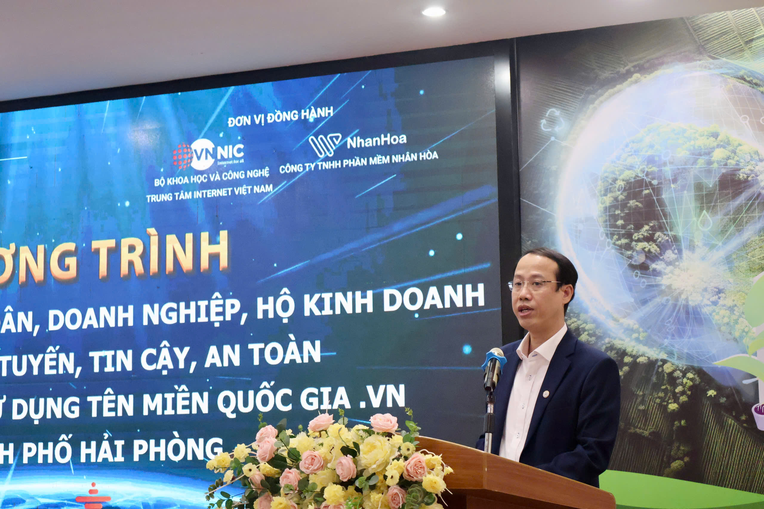 Ông Nguyễn Trường Giang, Quyền Giám đốc VNNIC.Ông Nguyễn Trường Giang, Quyền Giám đốc VNNIC khẳng định thành phố Hải Phòng là trung tâm công nghiệp, thương mại, logistics và dịch vụ cảng biển lớn nhất miền Bắc, với vị trí địa lý chiến lược, hạ tầng đồng bộ và nguồn nhân lực chất lượng cao. Thành phố là một trong những địa phương tiên phong trong chuyển đổi số, tích cực ứng dụng công nghệ vào quản lý, sản xuất, thương mại và du lịch, hướng tới mô hình đô thị thông minh, kinh tế số, xã hội số. Điểm lại những hoạt động phối hợp hiệu quả giữa VNNIC và thành phố Hải Phòng trong thời gian qua, ông Giang nhấn mạnh: “Với vai trò là đơn vị đầu mối của Bộ KH&CN trong việc thực hiện chương trình này, VNNIC cam kết sẽ cùng với các địa phương, đặc biệt là thành phố Hải Phòng hỗ trợ các doanh nghiệp, hộ kinh doanh và cá nhân sử dụng tên miền quốc gia “.vn” và các dịch vụ số (Email/Website) để xây dựng thương hiệu, hiện diện trực tuyến, và nâng cao sự tin cậy của người dùng”.