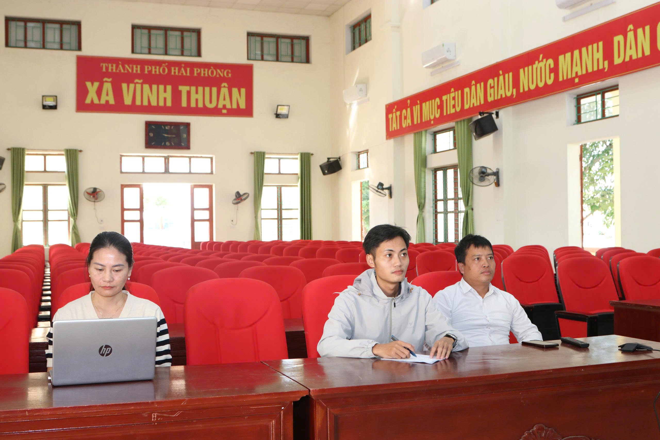 Cán bộ làm công tác thông tin cơ sở xã Vĩnh Thuận tham gia tập huấn tại điểm cầu của xã.Hội nghị cũng cung cấp thông tin về Đề án nâng cao hiệu quả hoạt động thông tin cơ sở dựa trên ứng dụng công nghệ thông tin cho hệ thống truyền thanh, định hướng mục tiêu và giải pháp giai đoạn 2026–2030 nhằm hiện đại hóa hệ thống thông tin cơ sở của thành phố. Đồng thời, học viên được hướng dẫn sử dụng và khai thác hiệu quả hệ thống thông tin nguồn của thành phố, đổi mới phương thức cung cấp thông tin, nâng cao chất lượng nội dung nhằm bảo đảm thông tin đến với người dân một cách chủ động, kịp thời, chính xác và hiệu quả.