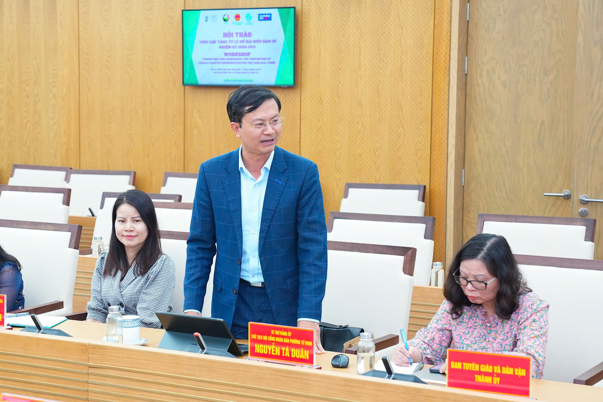 Đồng chí Nguyễn Tá Duân, Bí thư Đảng ủy, Chủ tịch HĐND phường Tứ Minh tham luận tại Hội thảo.Tại Hội thảo, các đại biểu được nghe diễn giả Ngô Tự Nam, nguyên Phó Chủ nhiệm Ủy ban Pháp luật của Quốc hội, nguyên Phó Trưởng Ban Công tác đại biểu của Ủy ban Thường vụ Quốc hội và ThS.Nguyễn Thị Kỳ, nguyên Giám đốc Trung tâm Bồi dưỡng đại biểu dân cử - Quốc hội phân tích, đánh giá toàn diện vai trò, vị trí và những đóng góp nổi bật của nữ lãnh đạo, quản lý và nữ đại biểu HĐND các cấp trong thời gian qua. Vai trò của nữ đại biểu dân cử trong kỷ nguyên chuyển đổi số.