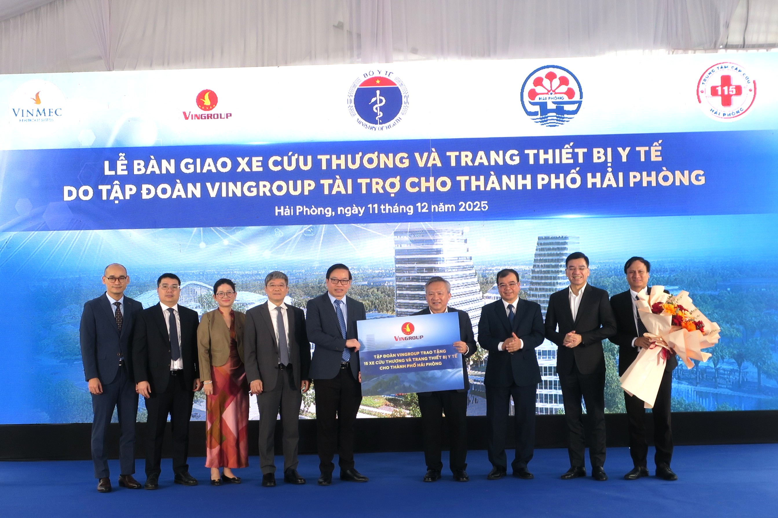 Tập đoàn Vingroup trao tặng 15 xe cứu thương và nhiều trang thiết bị y tế hiện đại để nâng cao năng lực cấp cứu ngoại viện cho thành phố Hải Phòng