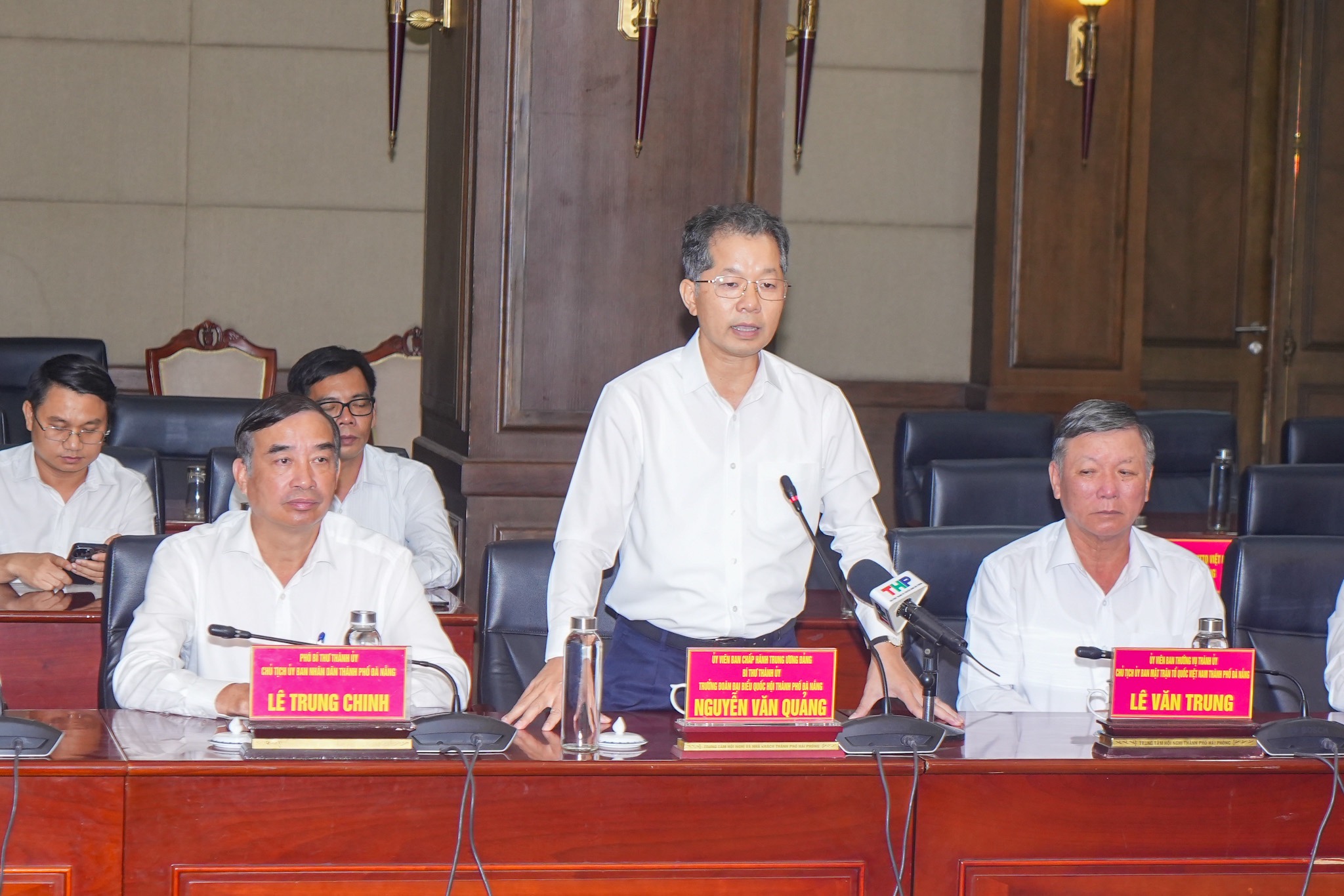 Đồng chí Nguyễn Văn Quảng, Bí thư Thành ủy, Trưởng Đoàn ĐBQH thành phố Đà Nẵng phát biểu.Thay mặt Đảng bộ, chính quyền và Nhân dân thành phố Đà Nẵng, đồng chí Nguyễn Văn Quảng, Bí thư Thành ủy, Trưởng Đoàn ĐBQH thành phố Đà Nẵng gửi lời thăm hỏi, sự chia sẻ trước những tổn thất do cơn bão số 3 gây ra tại thành phố Hải Phòng. Đồng thời bày tỏ mong muốn thành phố sớm vượt qua khó khăn, khắc phục hậu quả và ổn định đời sống Nhân dân.