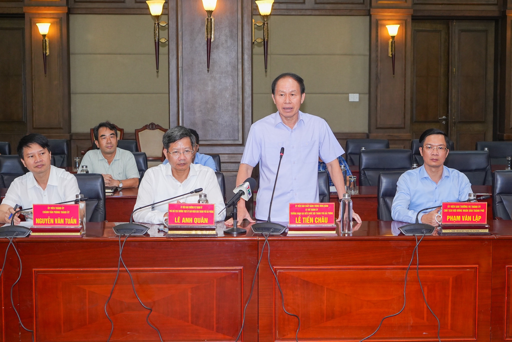Đồng chí Lê Tiến Châu, Bí thư Thành ủy, Trưởng Đoàn ĐBQH thành phố Hải Phòng phát biểu.Đồng chí Lê Tiến Châu, Bí thư Thành ủy, Trưởng Đoàn ĐBQH thành phố Hải Phòng cảm ơn tình cảm của Đảng bộ, chính quyền và Nhân dân thành phố Đà Nẵng. Đồng thời cho biết, toàn bộ hệ thống chính trị thành phố Hải Phòng cùng với các lực lượng vũ trang và Nhân dân đang tích cực khắc phục hậu quả cơn bão số 3, khẩn trương ổn định đời sống của người dân bị ảnh hưởng của cơn bão, tiếp tục hoạt động sản xuất, kinh doanh và các hoạt động bình thường của đời sống xã hội.
