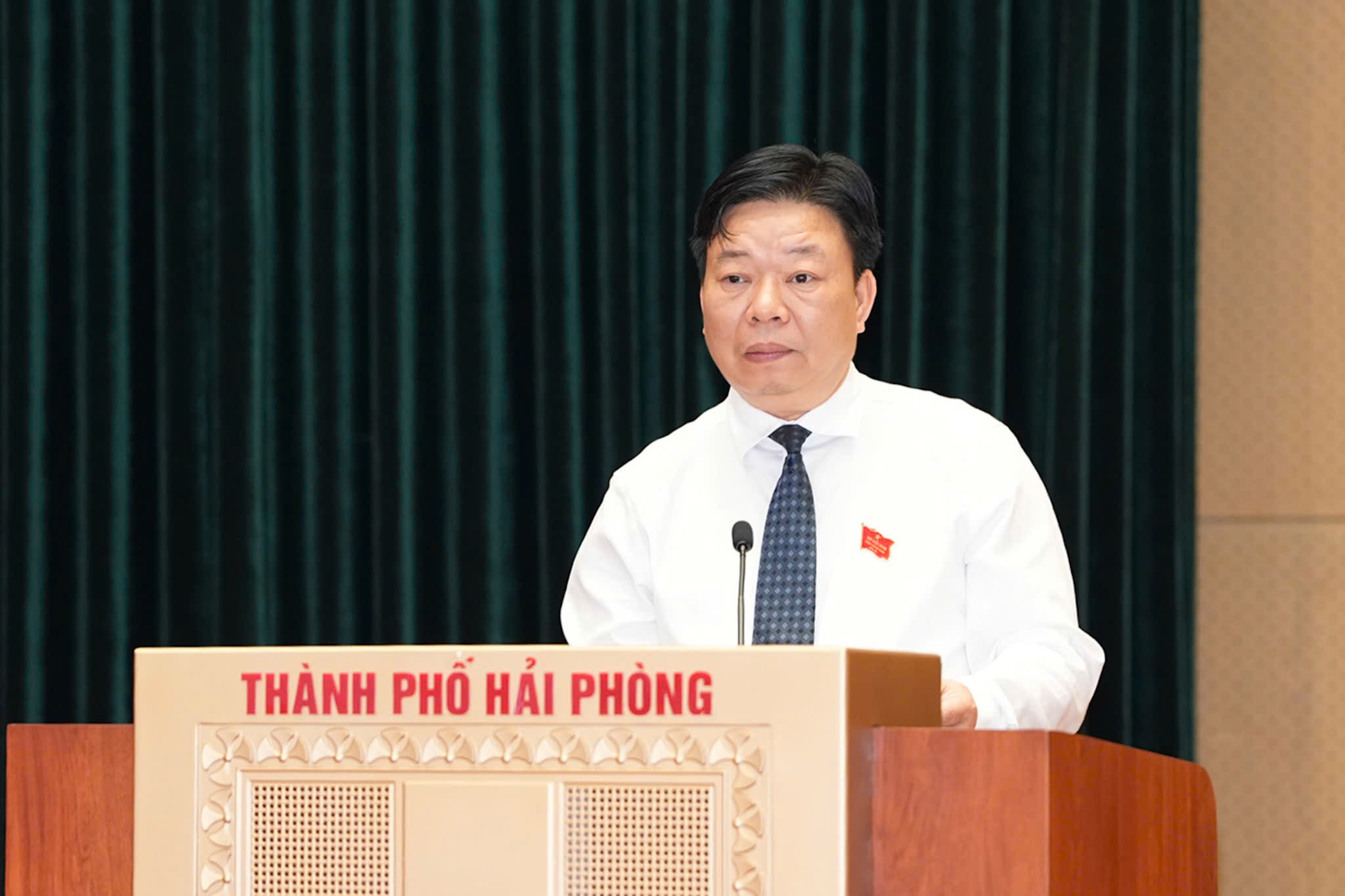 Phó Chủ tịch UBND thành phố Trần Văn Quân trình các Tờ trình tại Kỳ họp.Tại Kỳ họp, các đại biểu HĐND thành phố đã thảo luận và biểu quyết nhất trí thông qua 11 nghị quyết: