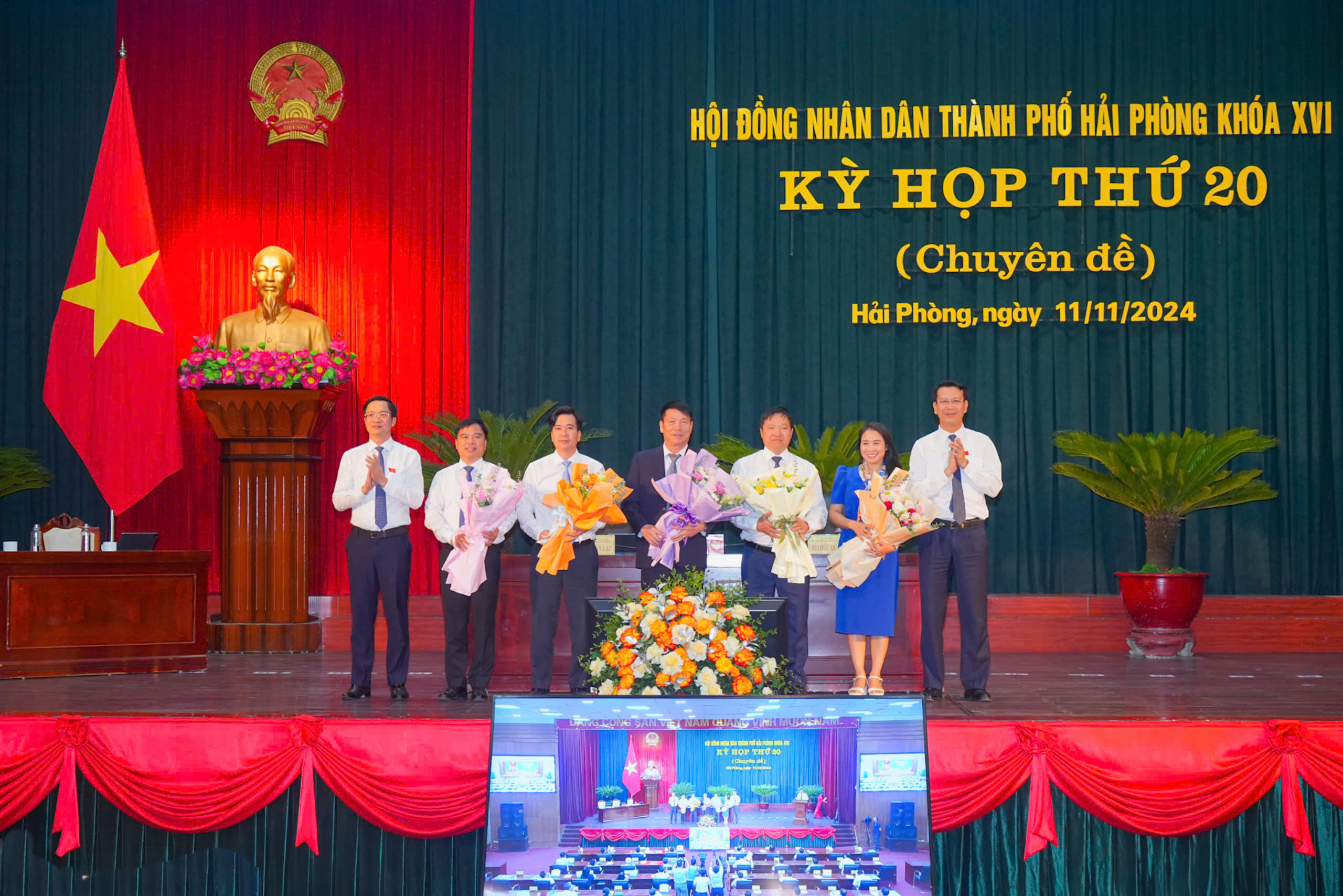 Chủ tịch HĐND thành phố Phạm Văn Lập và Phó Chủ tịch HĐND thành phố Bùi Đức Quang tặng hoa cho các đồng chí.Kỳ họp cũng thực hiện nội dung về công tác nhân sự thuộc thẩm quyền của HĐND thành phố. Theo đó, HĐND thành phố đã miễn nhiệm chức vụ Trưởng ban Ban Đô thị HĐND thành phố khóa XVI (nhiệm kỳ 2021 - 2026) đối với đồng chí Phùng Văn Thanh, Ủy viên Thành ủy, Bí thư Quận ủy Dương Kinh; miễn nhiệm chức danh Ủy viên UBND thành phố khóa XVI (nhiệm kỳ 2021 - 2026) đối với đồng chí Nguyễn Thị Thu, Ủy viên Thành ủy, Bí thư Quận ủy Hải An và đồng chí Trần Văn Phương, Bí thư Huyện ủy Cát Hải.