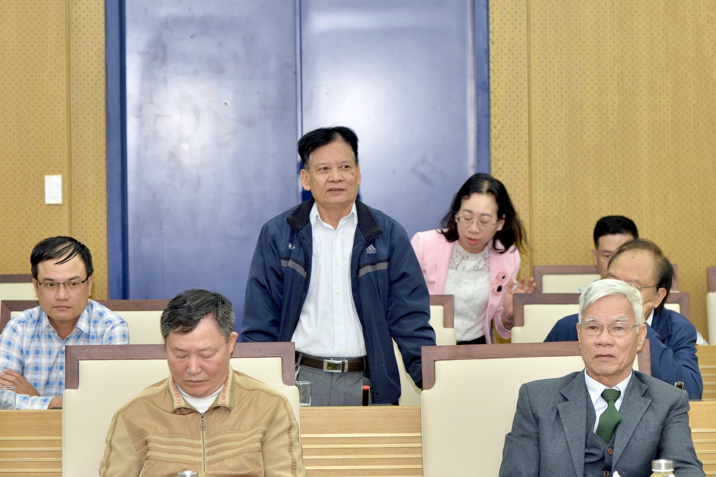 Cử tri phát biểu tại cuộc tiếp xúc.Cử tri cũng đề xuất thành phố xem xét lại chỉ tiêu về tỷ lệ nước thải đô thị được xử lý đạt quy chuẩn; sớm triển khai các nhiệm vụ, giải pháp xây dựng đô thị thông minh; tăng cường giám sát công tác chỉnh trang đô thị; đặt tên một số tuyến đường phố và thực hiện đánh số nhà đồng bộ; đẩy nhanh tiến độ cải tạo vỉa hè các tuyến phố trung tâm; triển khai mạnh mẽ hơn các nghị quyết của thành phố về bảo vệ nguồn nước ngọt; cần thiết ban hành nghị quyết mới để mở rộng phạm vi cả khu vực phía Tây. Về chính sách thu hút, trọng dụng nhân tài, cử tri kiến nghị cơ chế thực hiện cần bảo đảm công bằng, bổ sung điều kiện đánh giá để được thụ hưởng chính sách, mở rộng đối tượng thụ hưởng bao gồm cả chuyên gia ở trong và ngoài thành phố…