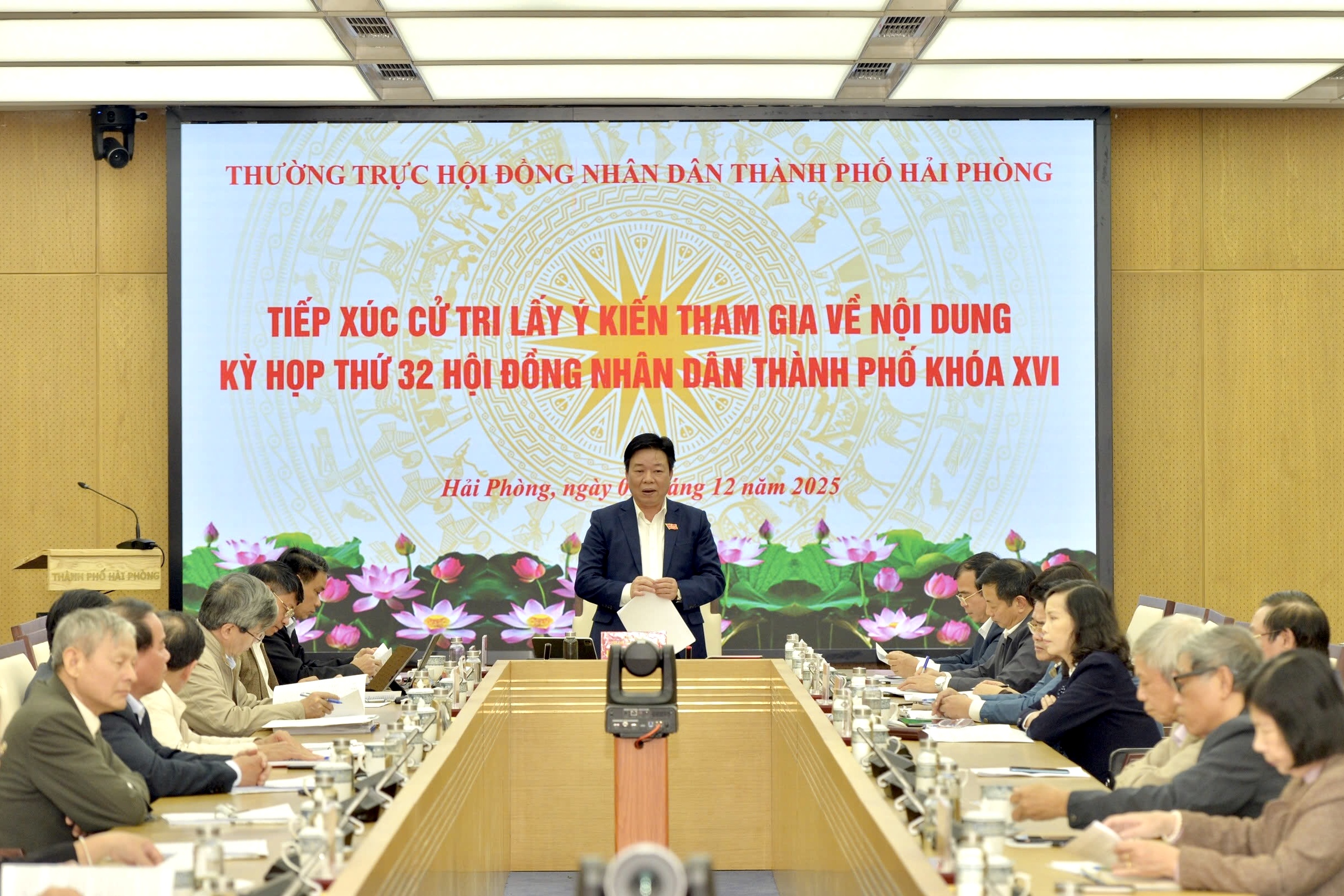 (Haiphong.gov.vn) - Chiều 01/12, Thường trực HĐND thành phố tổ chức tiếp xúc cử tri lấy ý kiến tham gia chuẩn bị Kỳ họp thứ 32 (Kỳ họp thường lệ cuối năm 2025) HĐND thành phố khóa XVI, nhiệm kỳ 2021 - 2026. Đồng chí Nguyễn Khắc Toản, Phó Chủ tịch HĐND thành phố chủ trì cuộc tiếp xúc. Cùng dự có Phó Chủ tịch UBND thành phố Nguyễn Minh Hùng và đại diện lãnh đạo các Sở, ngành, đơn vị liên quan.