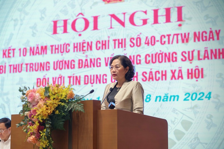 Thống đốc NHNN Việt Nam kiêm Chủ tịch HĐQT Ngân hàng NHCSXH Việt Nam Nguyễn Thị Hồng phát biểu khai mạc Hội nghị.Các báo cáo, ý kiến tại Hội nghị thống nhất đánh giá, kết quả đạt được trong 10 năm qua đã khẳng định Chỉ thị số 40-CT/TW và Kết luận số 06-KL/TW là giải pháp đúng đắn, phù hợp, thiết thực, mang tính đột phá trong chỉ đạo tổ chức triển khai thực hiện tín dụng chính sách xã hội (TDCSXH), qua đó, nhận được sự đồng tình, ủng hộ của các cấp, các ngành và đông đảo mọi tầng lớp nhân dân; sự đánh giá cao của Ngân hàng Thế giới và các tổ chức quốc tế, góp phần thực hiện có hiệu quả các chủ trương, chính sách, mục tiêu, nhiệm vụ quan trọng mà Đảng, Nhà nước đề ra.