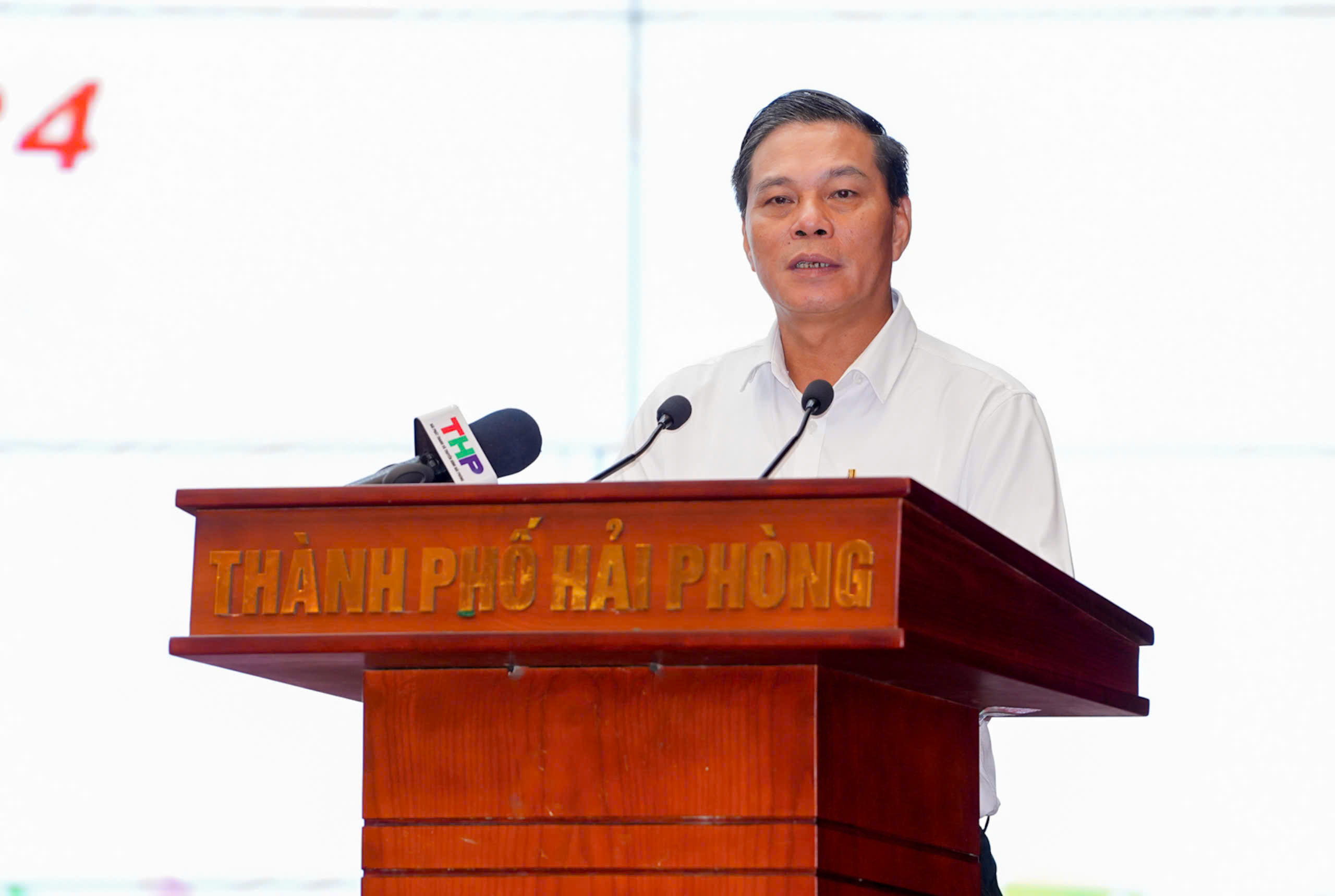 Chủ tịch UBND thành phố Nguyễn Văn Tùng phát biểu kết luận Hội nghị.Kết luận Hội nghị, Chủ tịch UBND thành phố Nguyễn Văn Tùng nhấn mạnh các địa phương, các ngành, đơn vị tiếp tục tập trung thực hiện có hiệu quả Nghị quyết số 143 của Chính phủ về các nhiệm vụ, giải pháp trọng tâm để khẩn trương khắc phục hậu quả bão số 3, đẩy mạnh khôi phục sản xuất kinh doanh, tích cực thúc đẩy tăng trưởng kinh tế, kiểm soát tốt lạm phát.Nhất là hỗ trợ nông dân nhưng phải đảm bảo nghiêm túc, chính xác, đầy đủ. UBND thành phố dự kiến di chuyển các hộ dân ra khỏi 50 chung cư cũ (cấp D) nguy hiểm, đồng thời trình phương án hỗ trợ di chuyển để HĐND thành phố sớm ban hành Nghị quyết. Ngành Nông nghiệp khẩn trương lập chủ trương đầu tư hơn 1.000 tỷ đồng trong nhiệm kỳ tới cùng với tranh thủ nguồn vốn Trung ương để hoàn thiện, nâng cao chất lượng đê điều. Trong công tác phòng, chống bão, thành phố đã nhận được sự chia sẻ tích cực của lực lượng vụ trang và các địa phương bạn, tới đây, mong tiếp tục nhận được sự hỗ trợ trong quá trình xây dựng và phát triển thành phố.