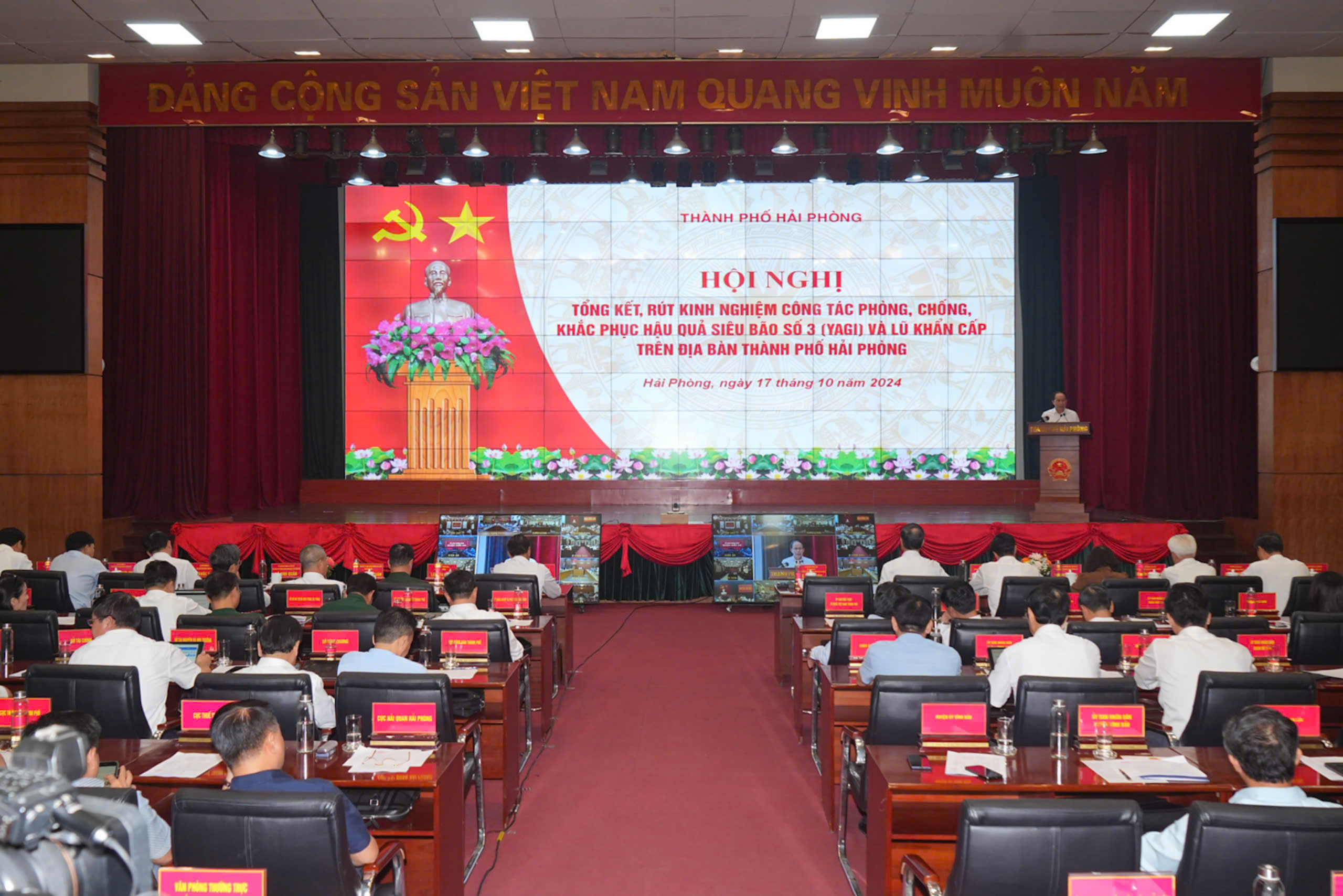 (Haiphong.gov.vn) - Chiều 17/10, UBND thành phố tổ chức Hội nghị tổng kết, rút kinh nghiệm trong công tác phòng, chống và khắc phục hậu quả siêu Bão số 3 và lũ khẩn cấp trên địa bàn. Hội nghị được tổ chức theo hình thức trực tiếp tại điểm cầu Trung tâm (Trung tâm Hội nghị thành phố), kết hợp trực tuyến tới 15 điểm cầu quận, huyện.