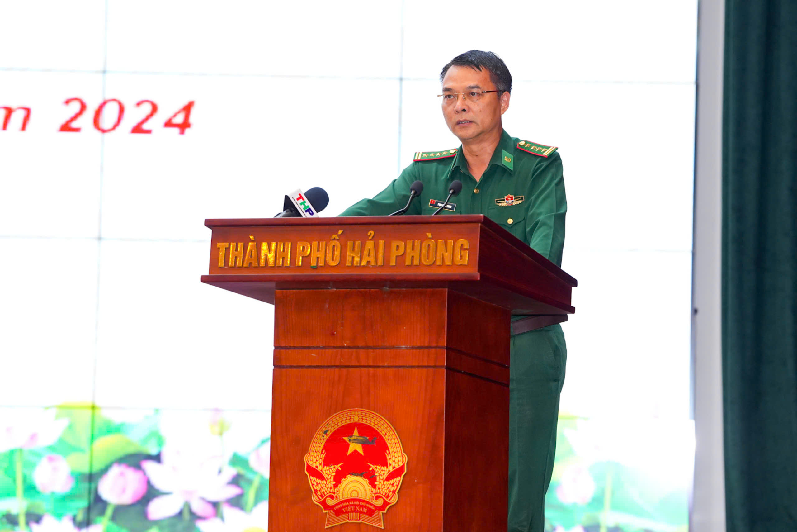Đại tá Nguyễn Hồng Phong, Chính ủy Bộ đội Biên phòng Hải Phòng phát biểu tại Hội nghị. Với sự lãnh đạo, chỉ đạo, điều hành sát sao, quyết liệt, chủ động, kịp thời, hiệu quả, từ sớm, từ xa, trực tiếp tại hiện trường của Chính phủ, Thủ tướng Chính phủ, các Phó Thủ tướng Chính phủ, các bộ, ngành Trung ương; sự vào cuộc của cả hệ thống chính trị, các cấp, các ngành, cơ quan, đơn vị, lực lượng vũ trang trên địa bàn thành phố; sự ủng hộ, đồng hành của người dân, cộng đồng doanh nghiệp, các tổ chức, cá nhân trong và ngoài nước, các nhà hảo tâm… đã hạn chế tối đa thiệt hại và khẩn trương khắc phục hậu quả do bão, mưa lũ.