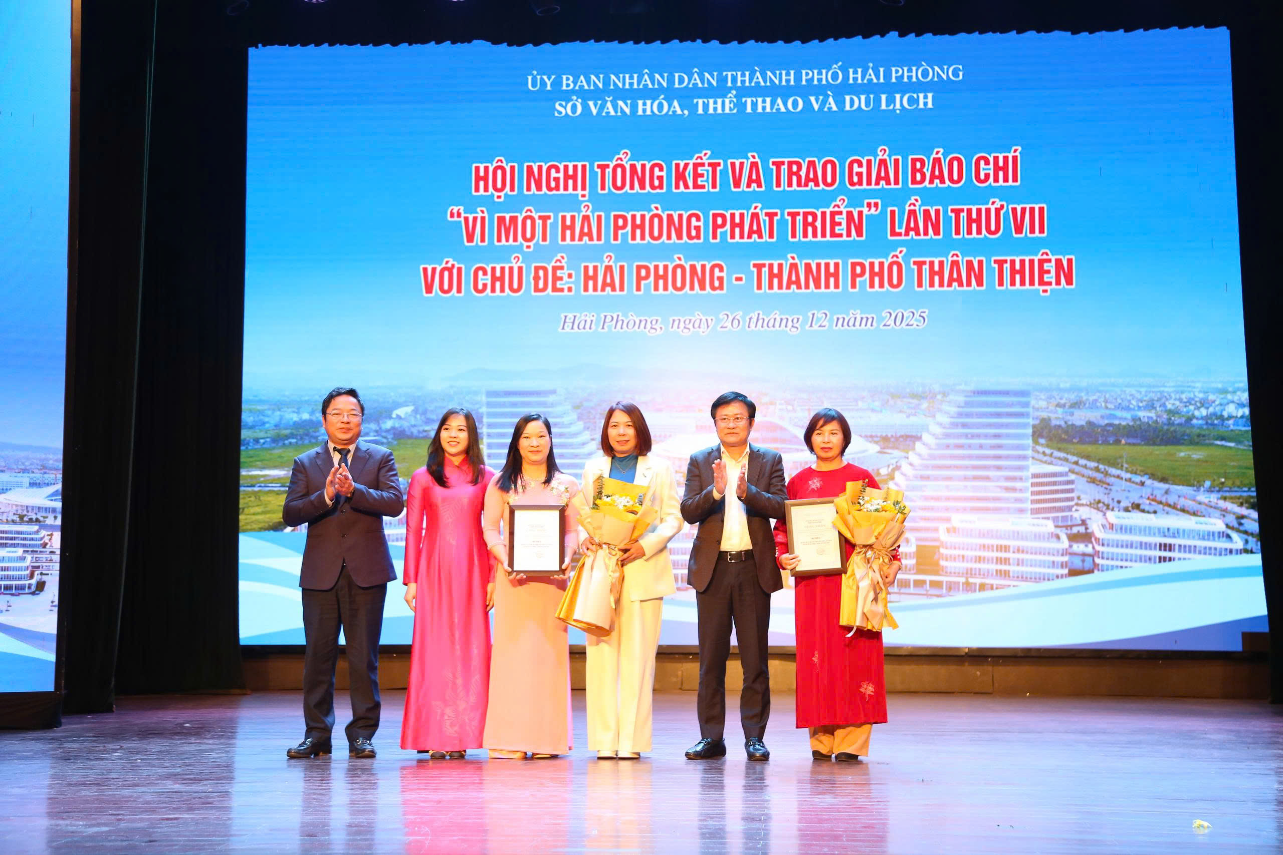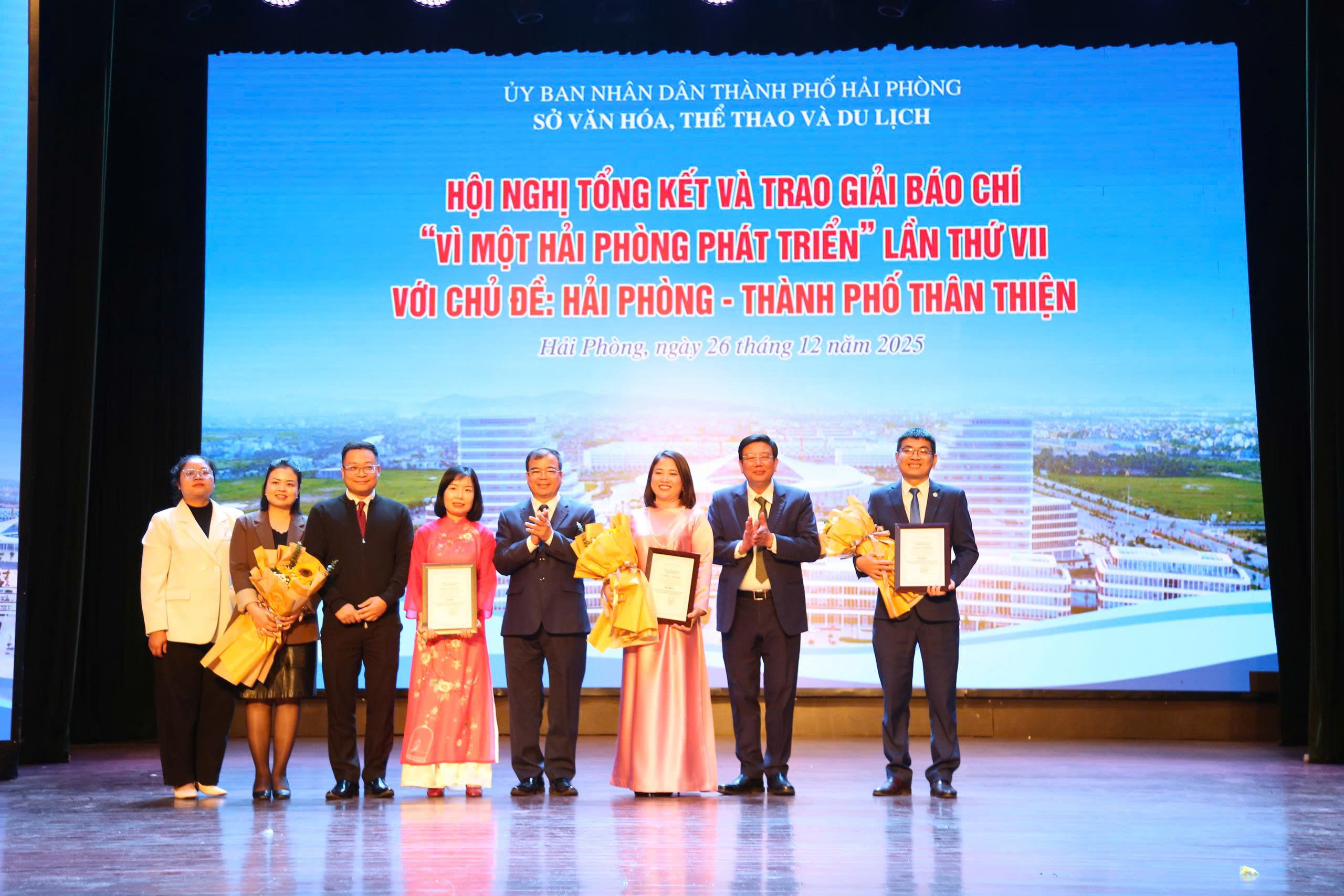 (Haiphong.gov.vn) – Sáng 26/12, Sở Văn hóa, Thể thao và Du lịch tổ chức Hội nghị tổng kết và trao Giải báo chí “Vì một Hải Phòng phát triển” lần thứ VII với chủ đề “Hải Phòng – Thành phố thân thiện”; đồng thời tổng kết và trao giải Cuộc thi tuyên truyền về cải cách hành chính nhà nước gắn với chuyển đổi số thành phố Hải Phòng năm 2025 trên hệ thống phát thanh xã, phường, đặc khu.