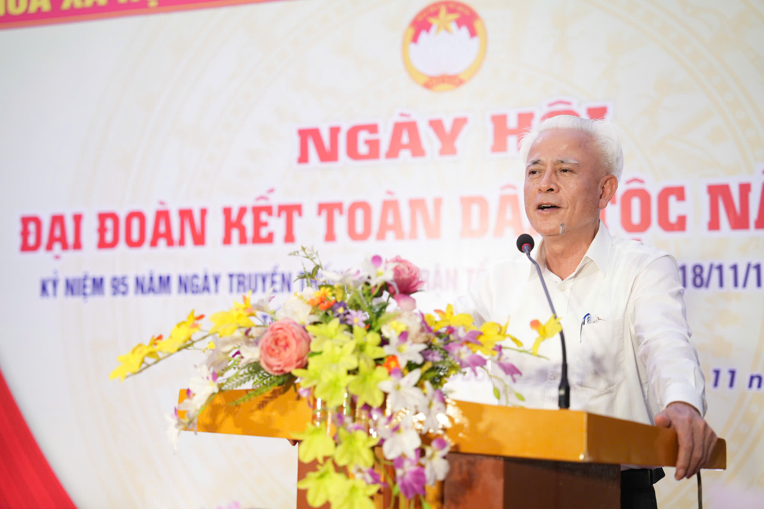 Đồng chí Trưởng Ban Nội chính Thành ủy tặng hoa chúc mừng ngày hộiTại Ngày hội, các đại biểu và nhân dân cùng ôn lại truyền thống 95 năm vẻ vang của Mặt trận Dân tộc thống nhất Việt Nam, đồng thời đánh giá kết quả thực hiện các phong trào thi đua yêu nước tại khu dân cư.