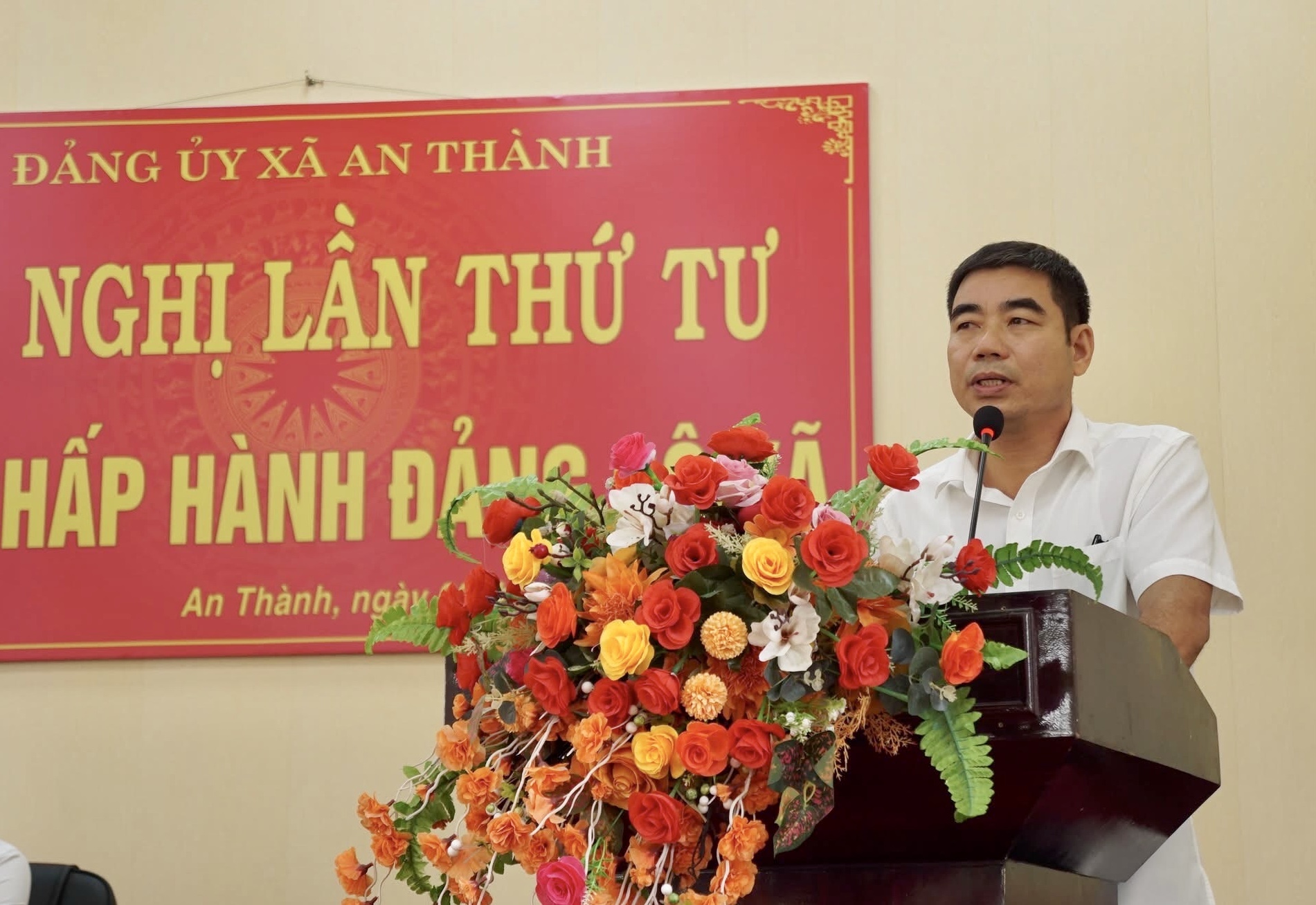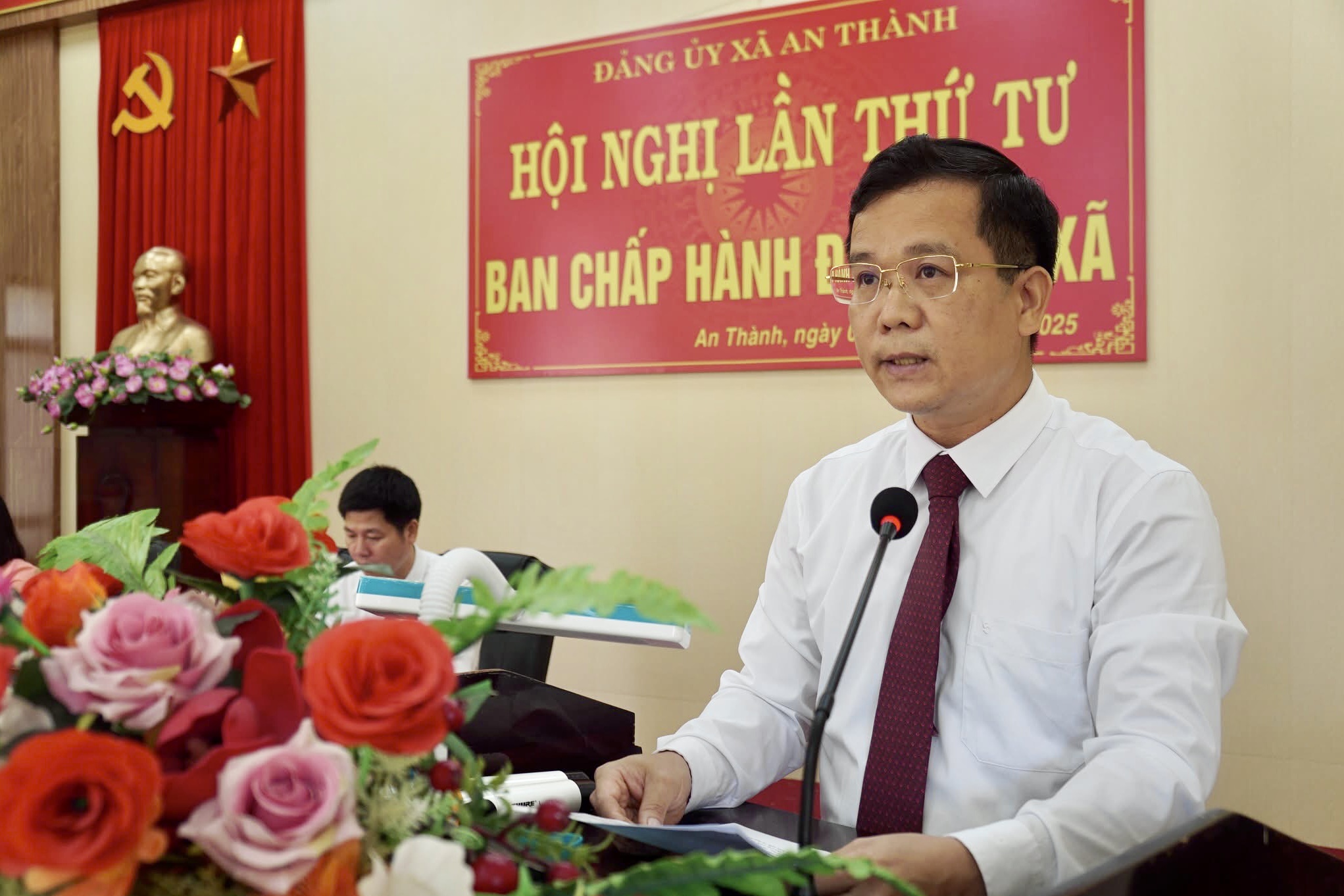 Đồng chí Trần Văn Hưng, Bí thư Đảng ủy, Chủ tịch HĐND xã phát biểu tại Hội nghị.Về nhiệm vụ trọng tâm 3 tháng cuối năm 2025, Đảng ủy xã An Thành tập trung cao công tác lãnh đạo, chỉ đạo hoàn thiện, ban hành và tổ chức quán triệt, tuyên truyền sâu rộng Nghị quyết Đại hội Đảng bộ xã và Đại hội Đảng bộ thành phố nhiệm kỳ 2025 - 2030 và Chương trình hành động thực hiện Nghị quyết; sớm đưa Nghị quyết vào cuộc sống bằng những hành động cụ thể, thiết thực; tạo sự chuyển biến rõ nét, toàn diện, đồng bộ trên mọi lĩnh vực của đời sống chính trị, kinh tế, văn hóa, xã hội. Tiếp tục lan toả phong trào “Bình dân học vụ số” nhằm phổ cập tri thức, kỹ năng số cơ bản cho mọi người dân với tinh thần cách mạng, toàn dân, toàn diện, bao trùm, sâu rộng, không ai bị bỏ lại phía sau; tập trung chỉ đạo vận hành mô hình chính quyền địa phương 2 cấp bảo đảm thông suốt, hiệu lực, hiệu quả, lấy sự hài lòng của người dân là thước đo kết quả công việc. Triển khai công tác tổ chức bộ máy, cán bộ gắn với xây dựng vị trí việc làm và đổi mới, sắp xếp tổ chức bộ máy hệ thống chính trị theo hướng “tinh, gọn, mạnh, hiệu năng, hiệu lực, hiệu quả”. Tăng cường lãnh đạo, chỉ đạo, chuẩn bị các điều kiện cần thiết để tổ chức thành công Đại hội MTTQ Việt Nam xã, các tổ chức chính trị - xã hội xã, cuộc bầu cử đại biểu Quốc hội khóa XVI và đại biểu HĐND các cấp nhiệm kỳ 2026 - 2031.
