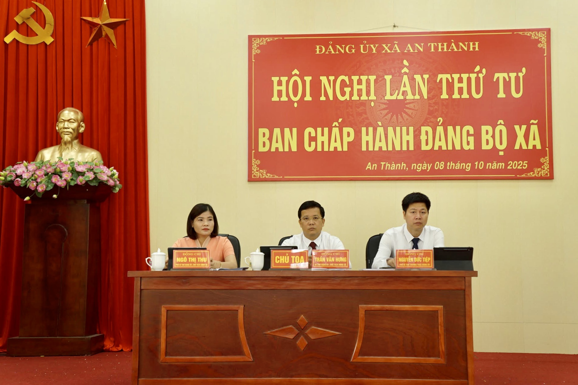 (Haiphong.gov.vn) - Sáng 8/10, Đảng ủy xã An Thành tổ chức Hội nghị lần thứ 4 Ban Chấp hành Đảng bộ xã khóa I, nhiệm kỳ 2025 - 2030 đánh giá tình hình thực hiện nhiệm vụ 9 tháng đầu năm; triển khai nhiệm vụ, giải pháp trọng tâm 3 tháng cuối năm 2025. Đồng chí Trần Văn Hưng, Bí thư Đảng ủy, Chủ tịch HĐND xã chủ trì Hội nghị.