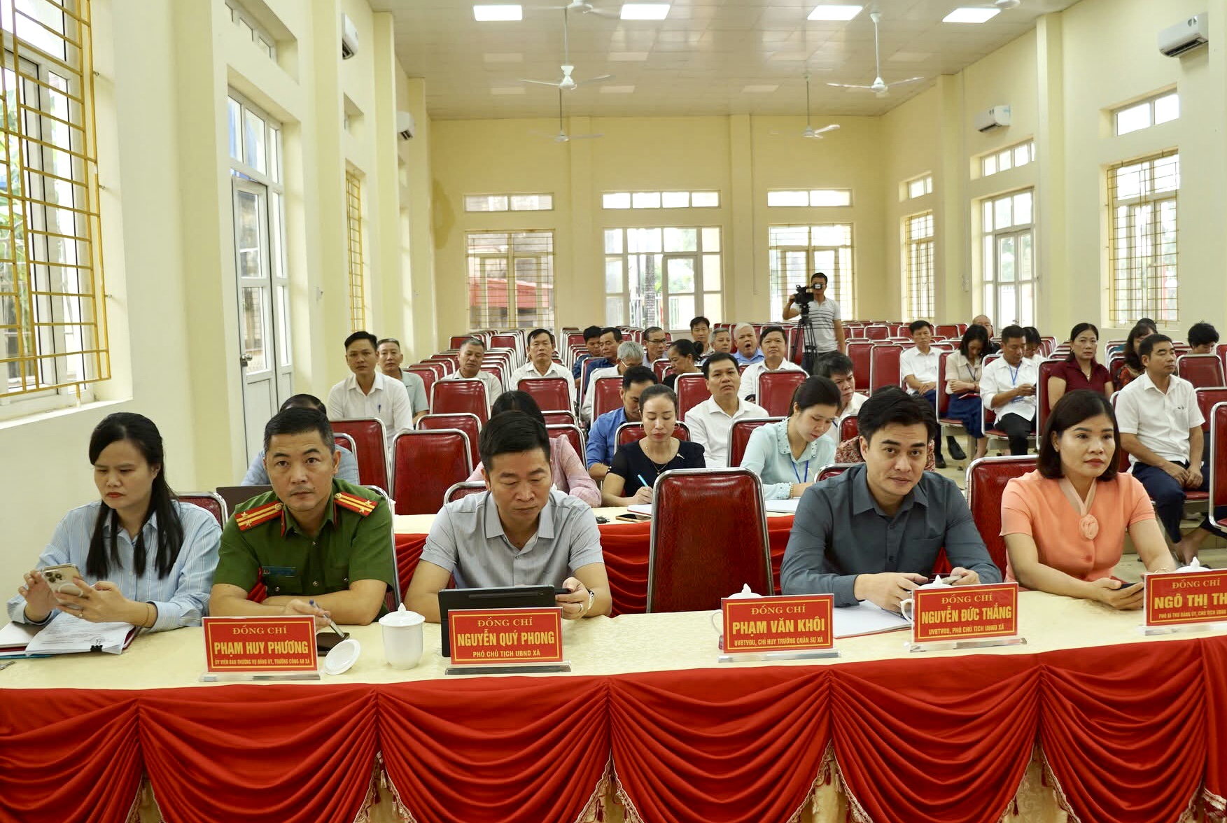 Các đại biểu dự Hội nghị.Chất lượng giáo dục đại trà, giáo dục mũi nhọn, công tác phổ cập giáo dục các cấp bậc học tiếp tục được duy trì. Toàn xã có 9/9 trường chuẩn quốc gia (đạt 100 %), trong đó có 6 trường (Mầm non và Tiểu học) đạt chuẩn mức độ 2 (đạt 66,6%). Đẩy mạnh cải cách hành chính, chuyển đổi số trong y tế. Nâng cao tỷ lệ tham gia BHXH, BHYT, BHTN; đến 9/2025, tỷ lệ bao phủ BHYT đạt 91,3%, BHXH đạt 50,8%. Công tác quản lý nhà nước về văn hóa, quy hoạch bảo tồn, phát huy giá trị các di sản văn hóa, lễ hội được tăng cường. Công tác thông tin, truyền thông đã phản ánh kịp thời các hoạt động về chính trị, kinh tế, văn hoá xã hội, quốc phòng - an ninh diễn ra trên địa bàn xã. Quan tâm, chú trọng công tác đào tạo nghề, giải quyết việc làm cho người lao động; chăm lo các đối tượng chính sách, người có công, người nghèo, đặc biệt là trong dịp lễ, Tết. Thực hiện các giải pháp thúc đẩy phát triển xã hội số, hình thành công dân số trên địa bàn xã. Tình hình trật tự, an toàn xã hội trên địa bàn xã giữ vững.